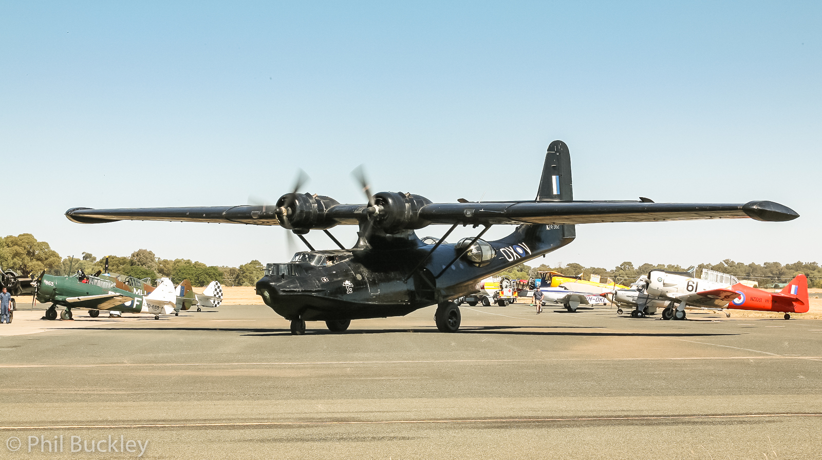 The HARS PBY-6A Catalina taxies out for takoff. The flying boat wears the livery of the famous RAAF ‘Black Cats’ night-time mine-laying fleet. (photo by Phil Buckley)