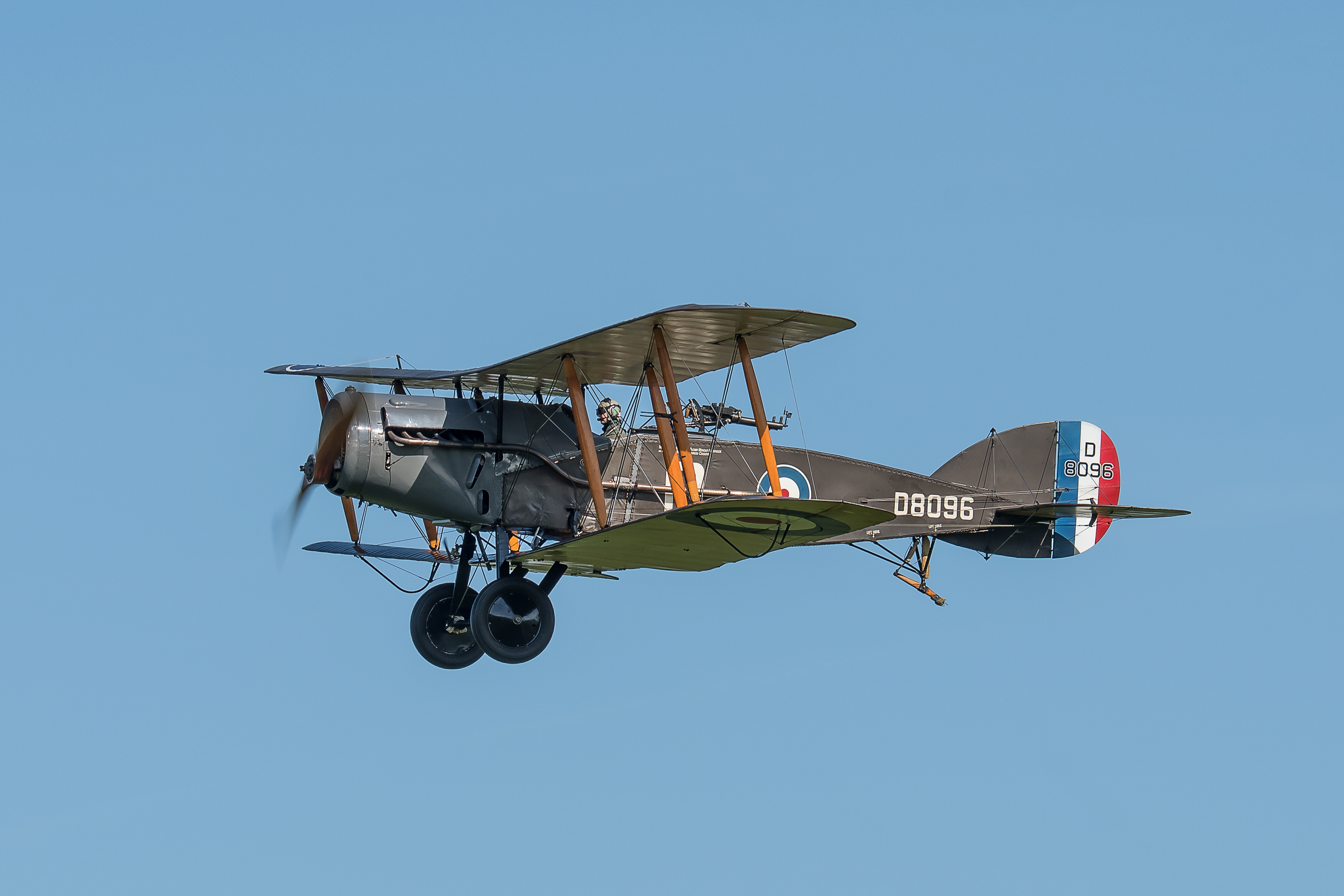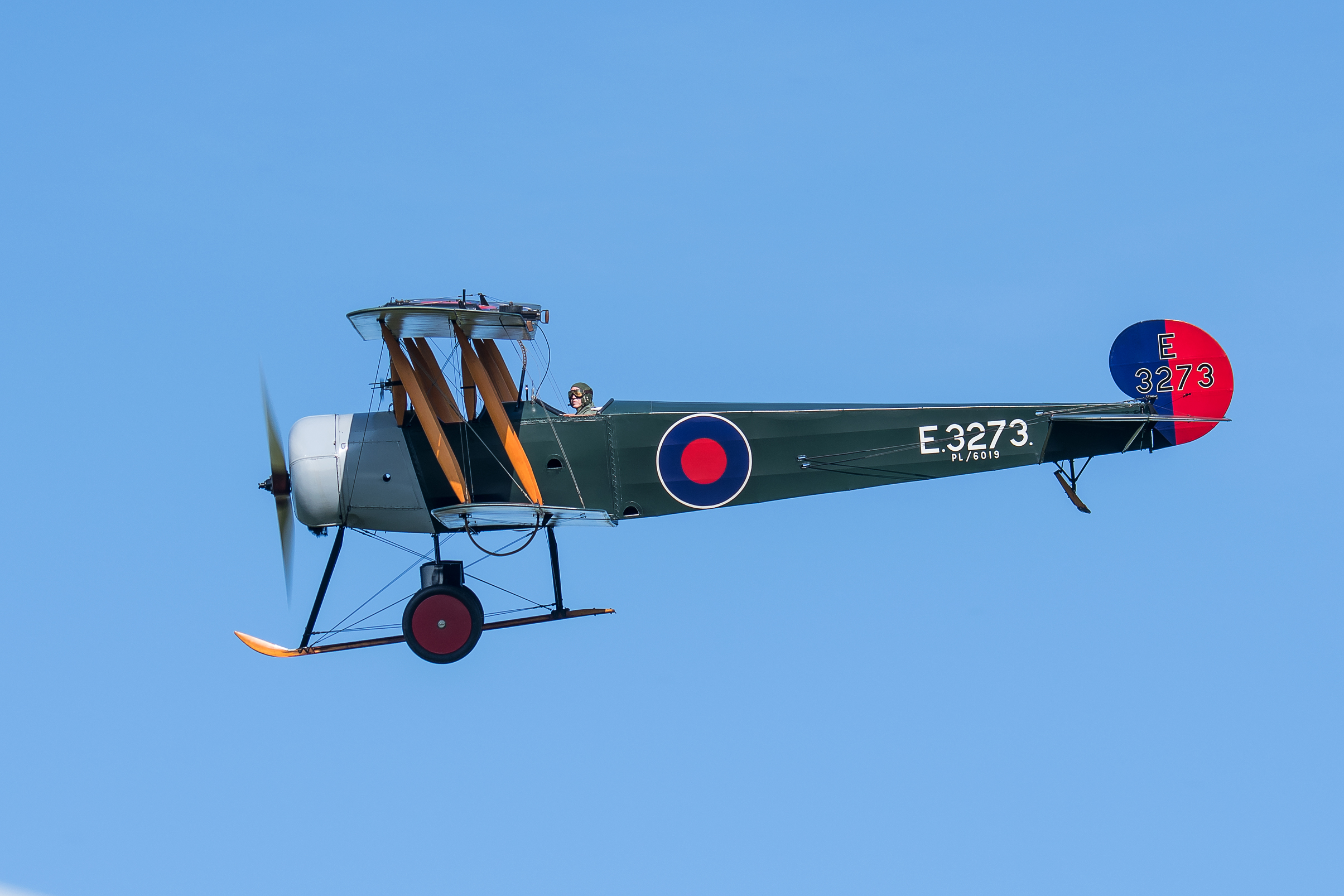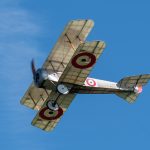 After the braun displayed by the Sea Fury, the pace mellowed again with a performance by a pair of classic Westland Gazelle helicopters. This was followed by a host of WWI-era aircraft types from the Royal Naval Air Service and Royal Flying Corps, featuring a Bristol Scout, Avro 504K, as well as the Bristol F2B Fighter, Sopwith Camel and Triplane.