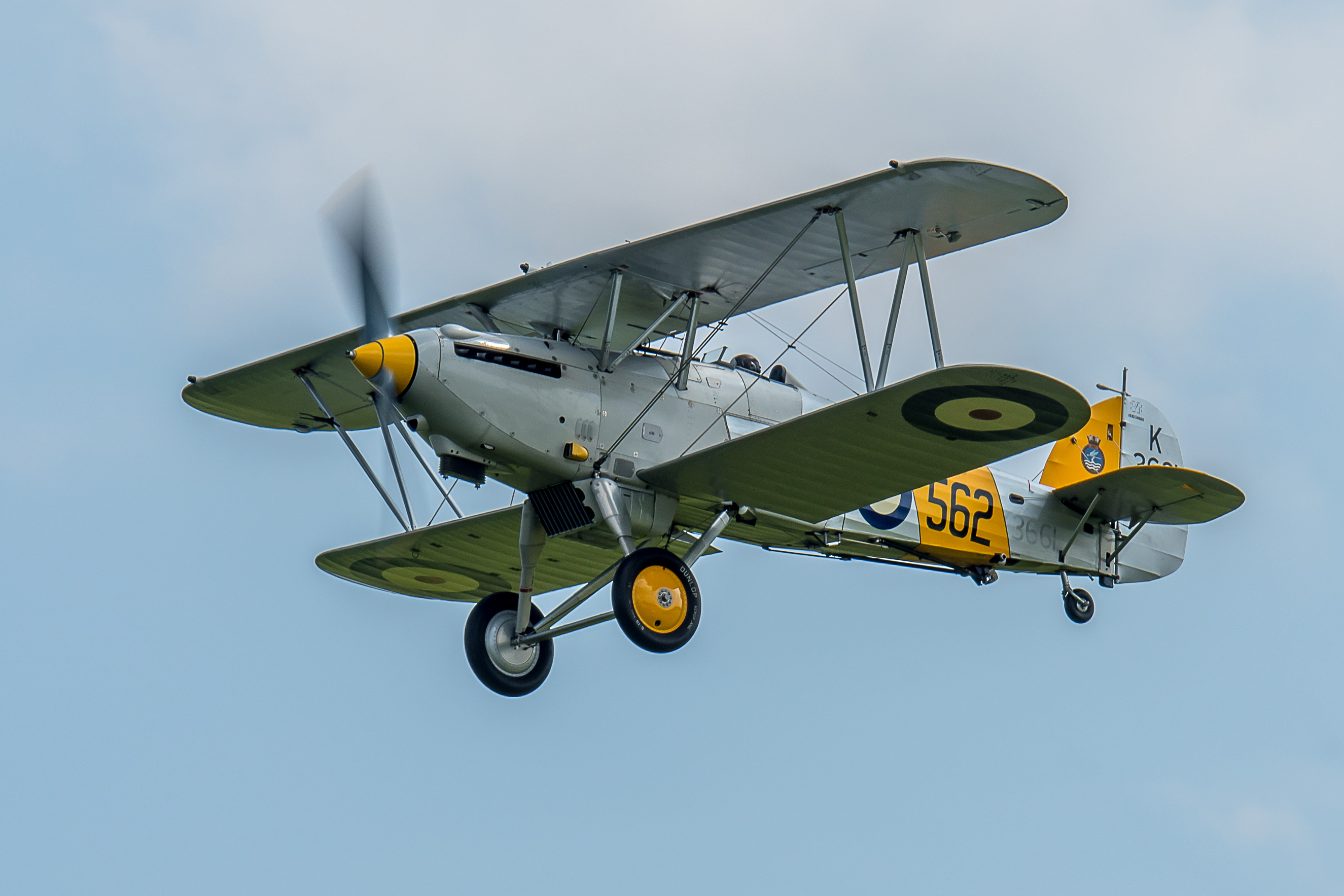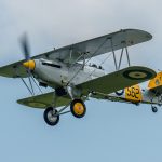 Speeding things up slightly was arrival of two of my personal favorites, the silver wings of the Historic Aircraft Colletion’s Hawker Nimrod Mk.ll and Demon Display’s Hawker Demon Mk.I. Then classic British trainers came to the fore with the early 1930s Avro 621 Tutor and deHavilland DH82A Tiger Moth followed by a late 30s Miles Magister monoplane and a late 40s deHavilland Canada DHC-1 Chipmunk 22. Then came a workhorse of the WWII Royal Navy’s Fleet Air Arm, Fairey Swordfish Mk.I W5856 operated by the Royal Navy Historic Flight. She received an escort from a classic American Advanced Trainer, North American AT-6D Texan 42-85068.