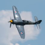 This was rounded out by a spirited display from The Fighter Collection’s FM-2 Wildcat and FG-1D Corsair, both of which are in Fleet Air Arm colors. At the end of their display these two were joined by the Hawker Demon, Sea Hurricane and Spitfire for a Heritage Flight sequence.