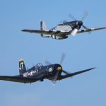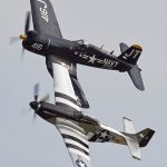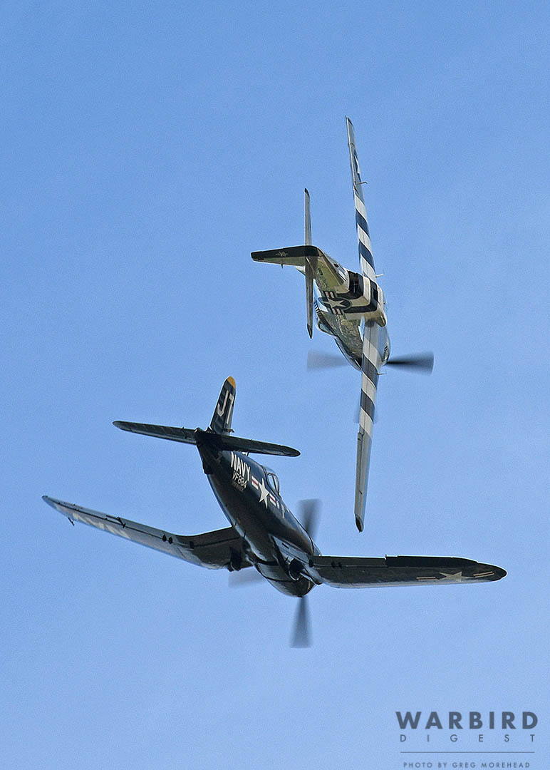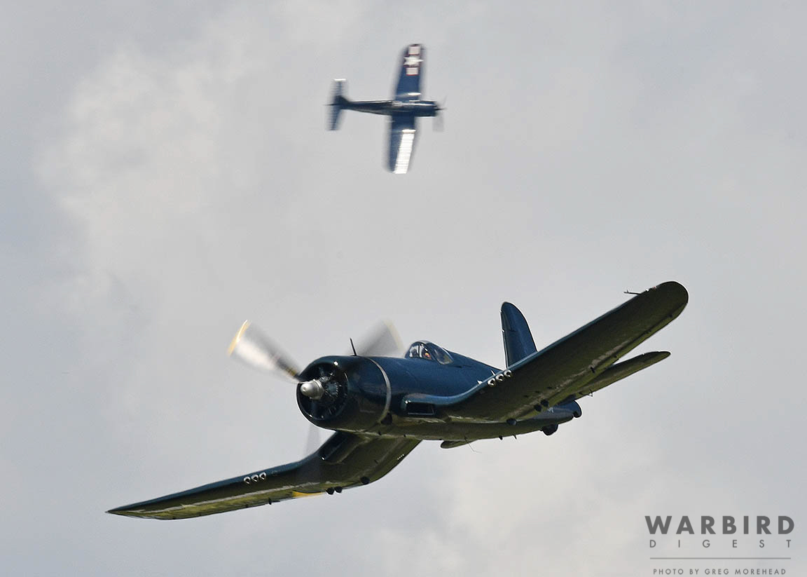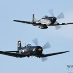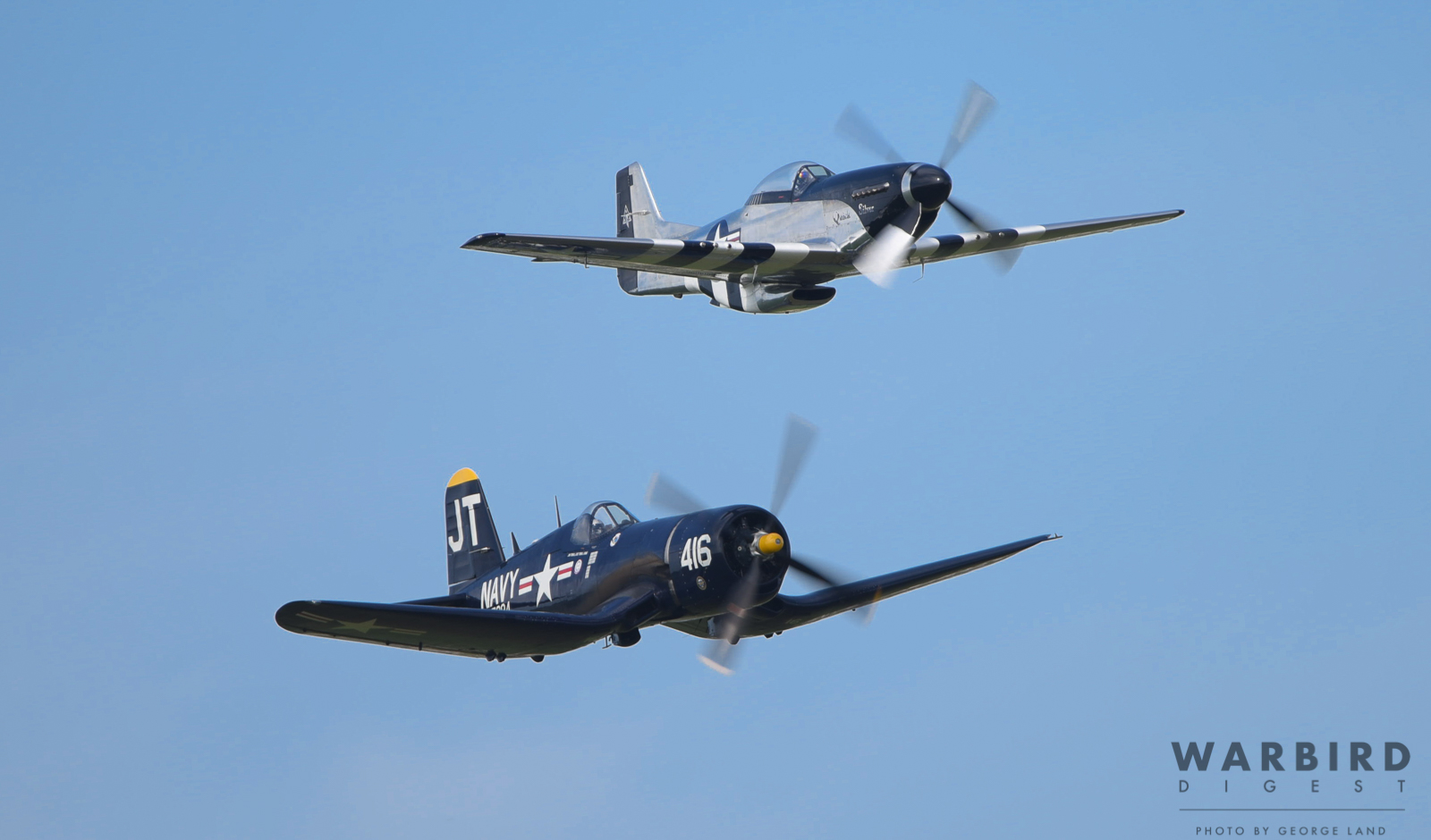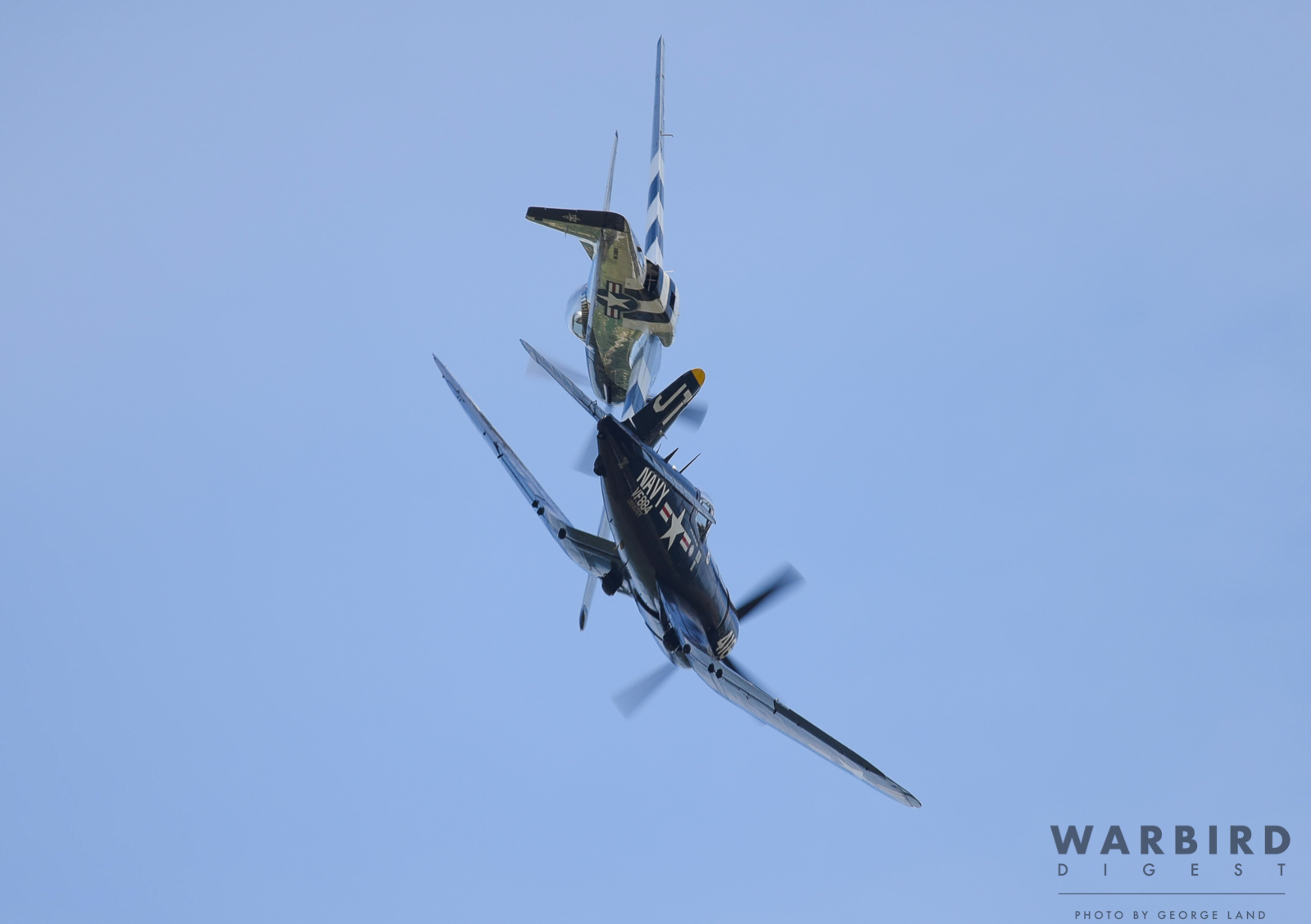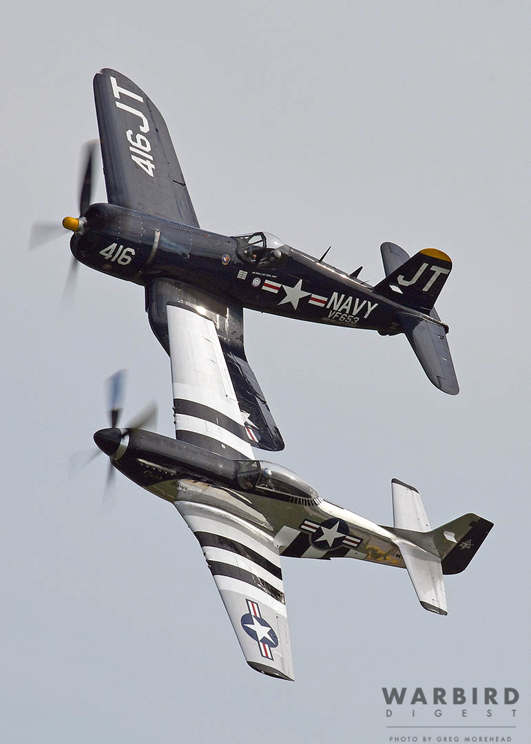 Jim Tobul flying his F4U-4 Korean War Hero with Scott Yoak in the P-51D Mustang Quick Silver. (photo by George Land)