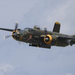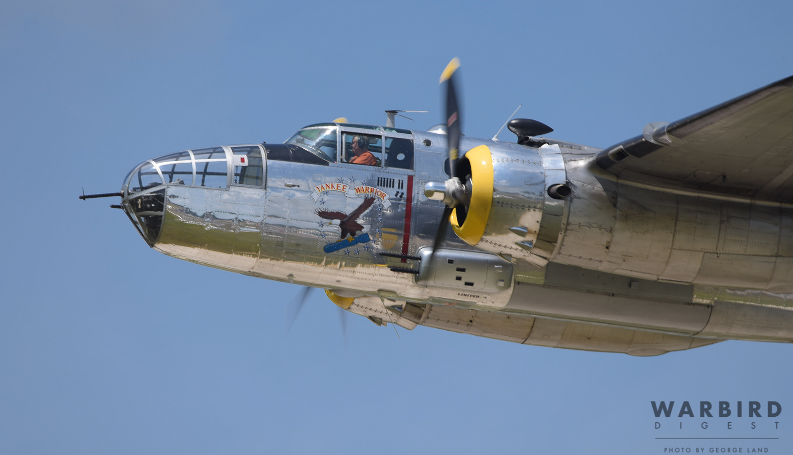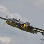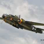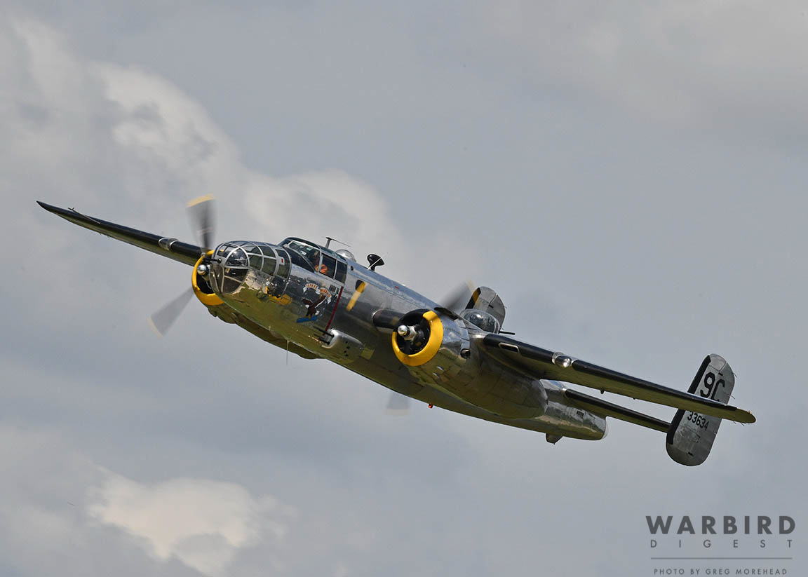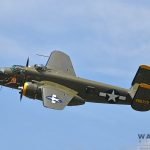 The Yankee Air Museum’s combat-veteran North American B-25D Mitchell 43-3634 Yankee Warrior flies by the crowd at Thunder Over Michigan. (photo by George Land)
