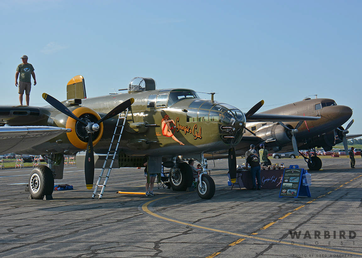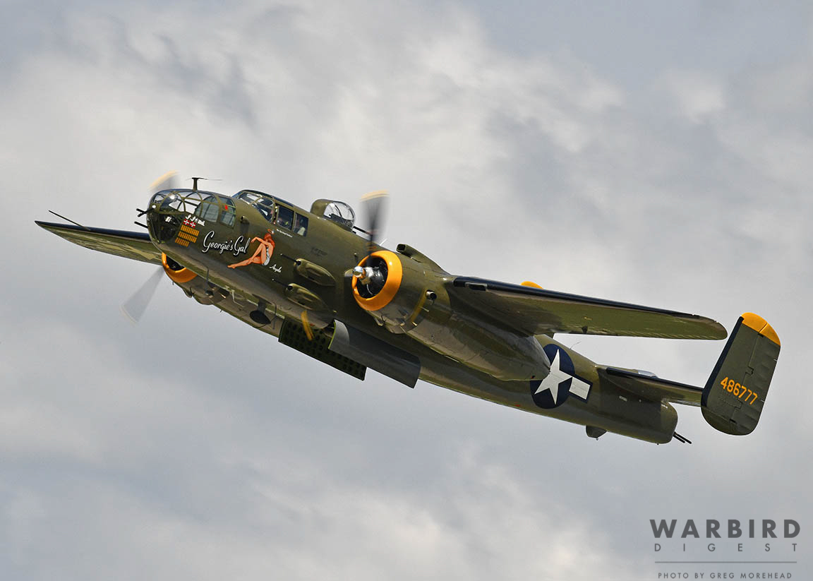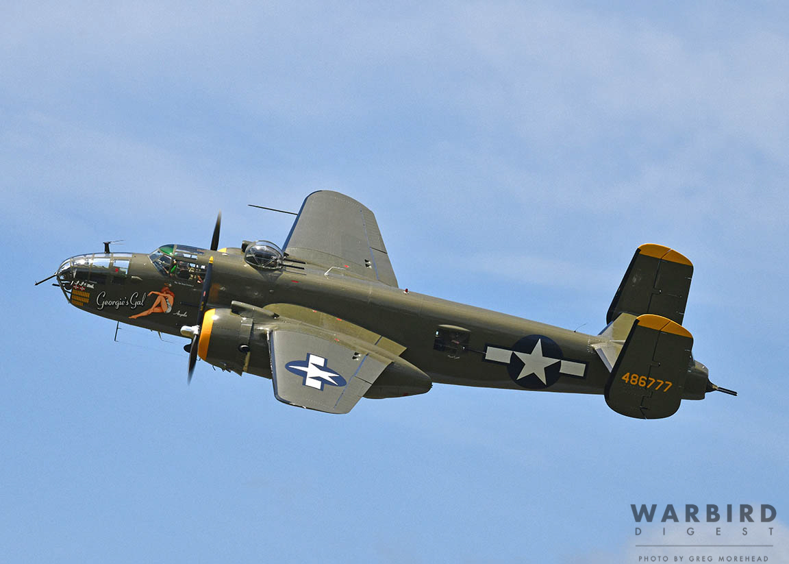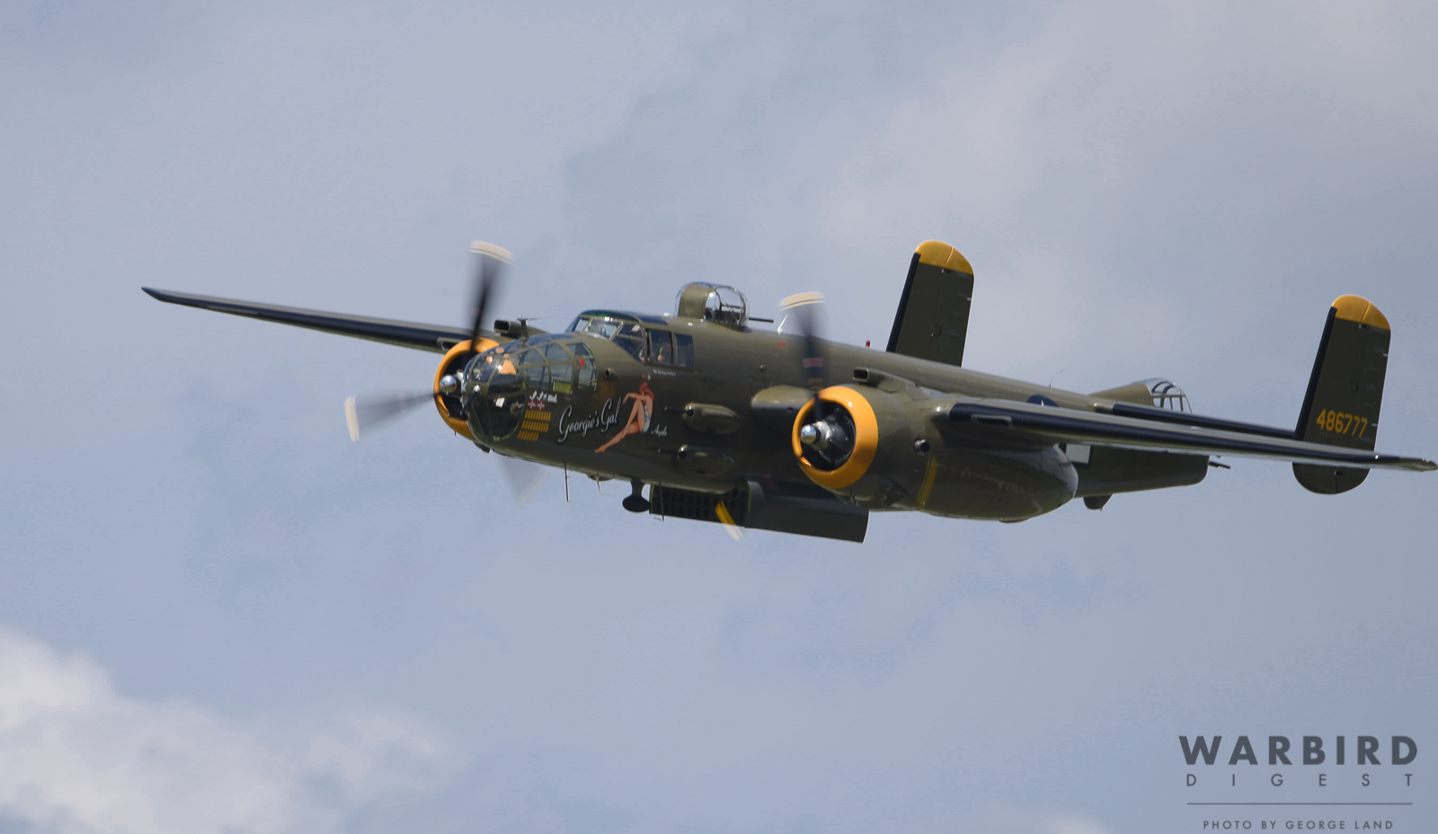 The Liberty Aviation Museum’s B-25J Mitchell 44-86777 ‘Georgie’s Gal’ with her bomb bay doors open. (photo by George Land)