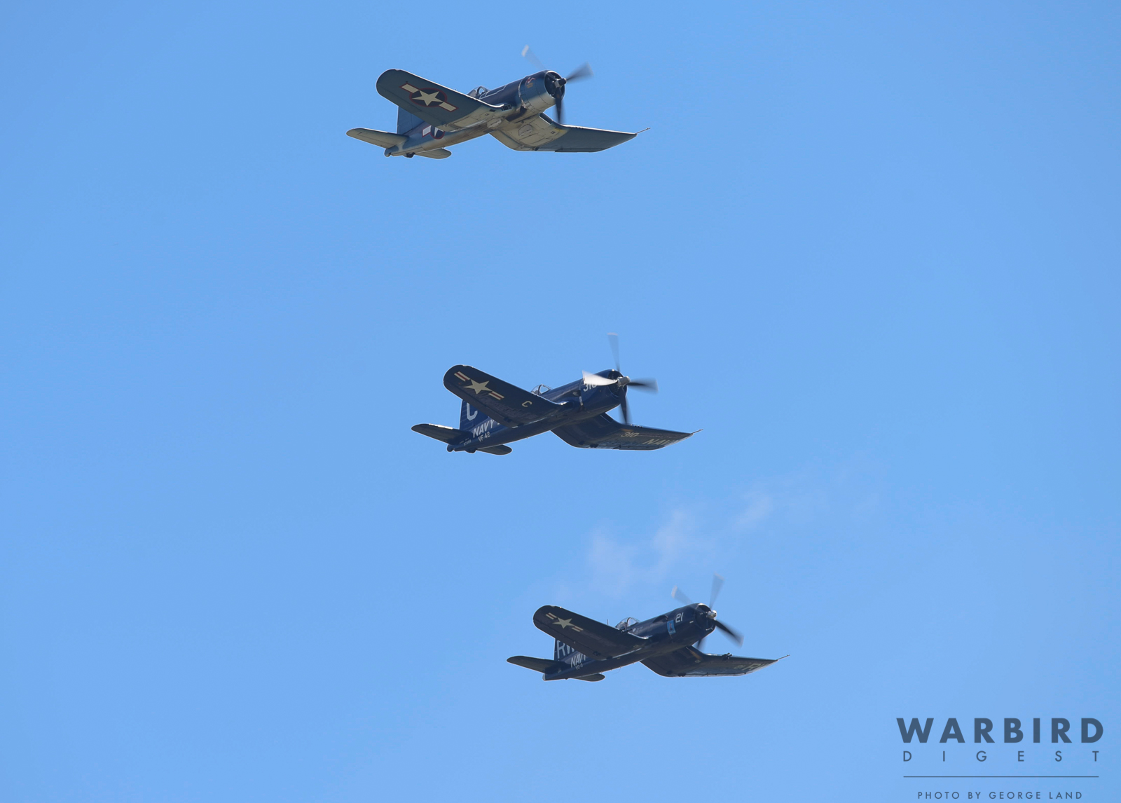 From top to bottom… Mid America Flight Museum’s FG-1D Bu.92471 Marine’s Dream, Wings of the North’s F4U-4 Bu.97388 and the Lone Star Flight Museum’s F4U-5NL Bu.121881. (photo by George Land)