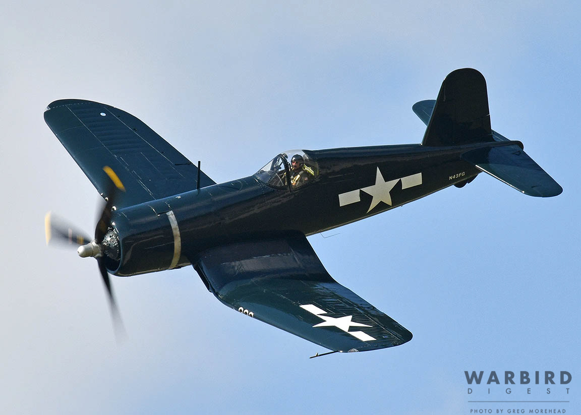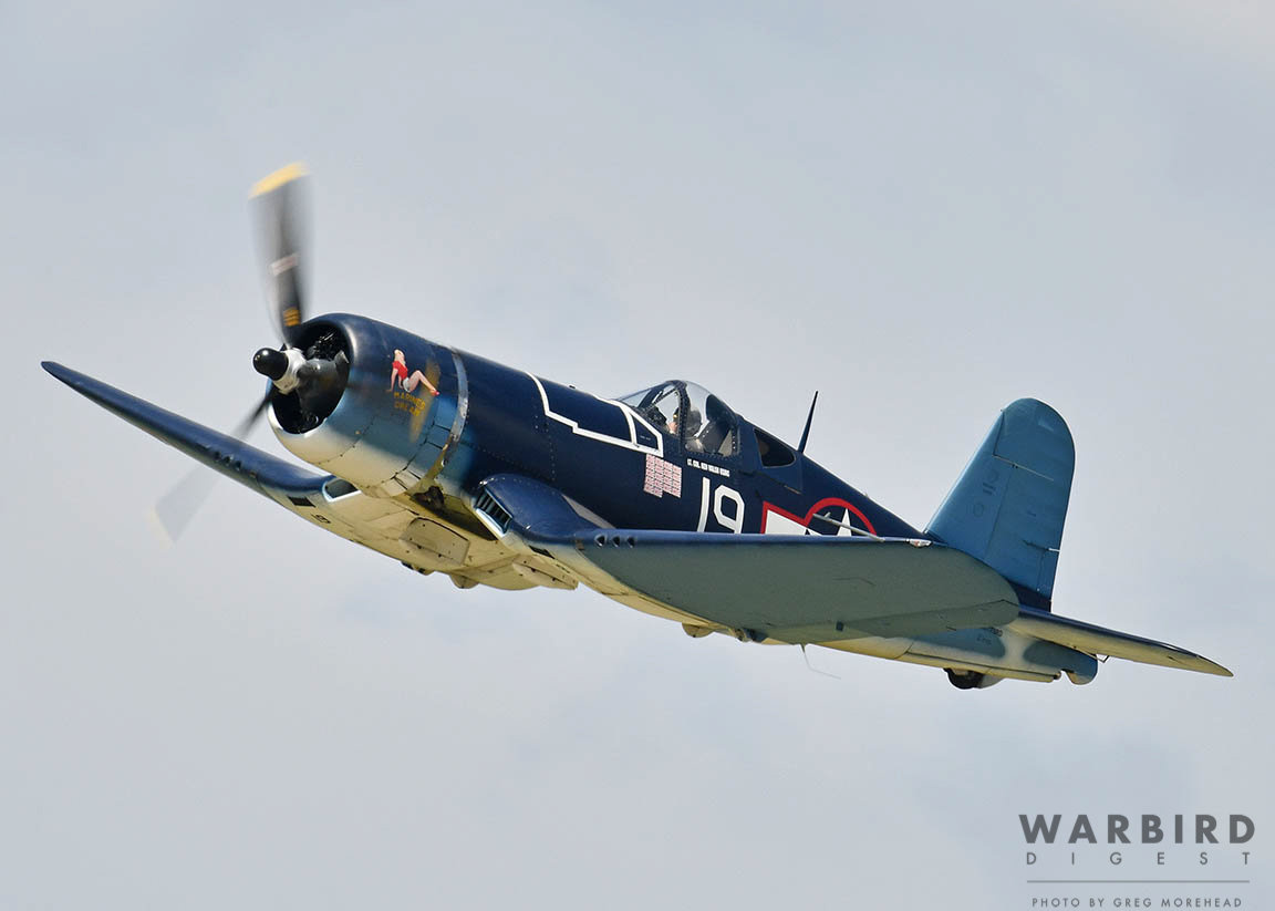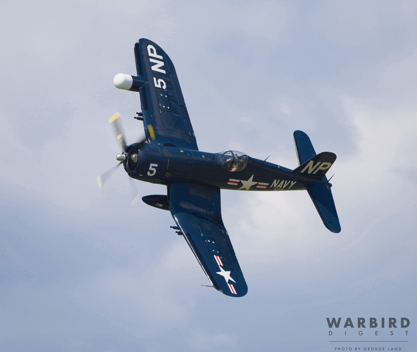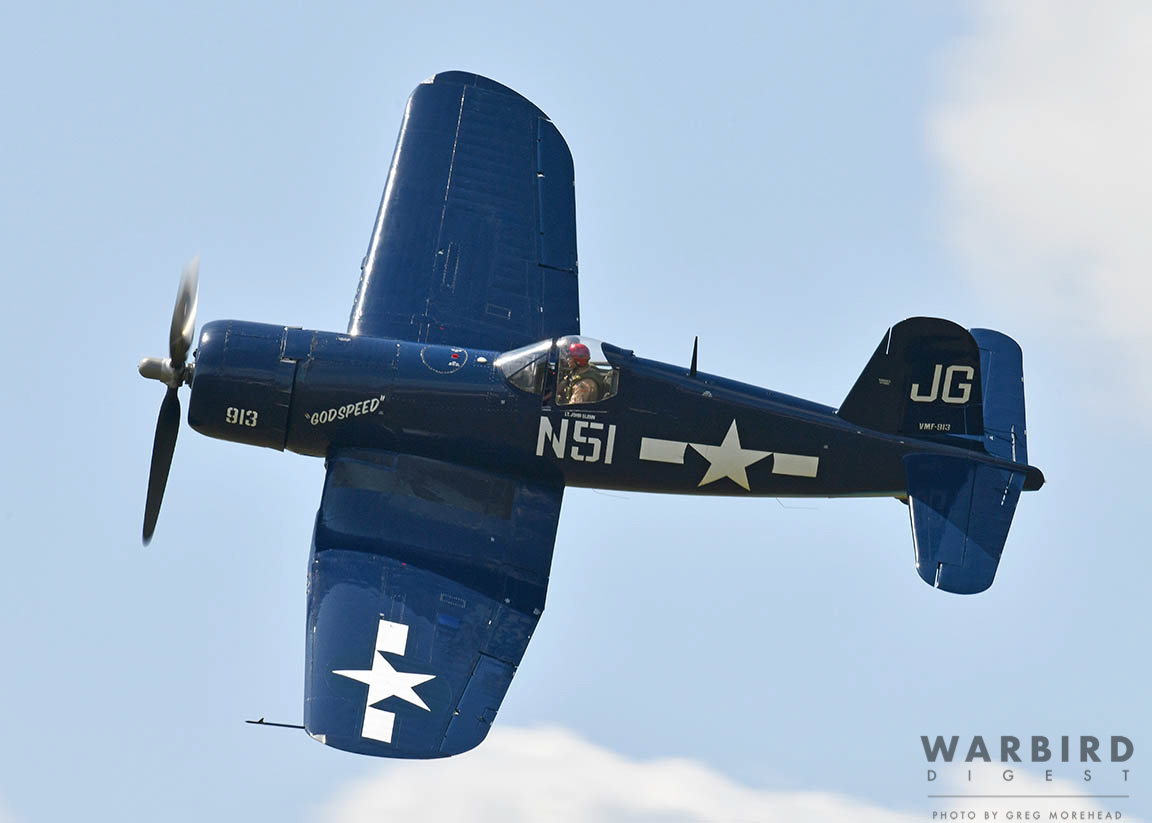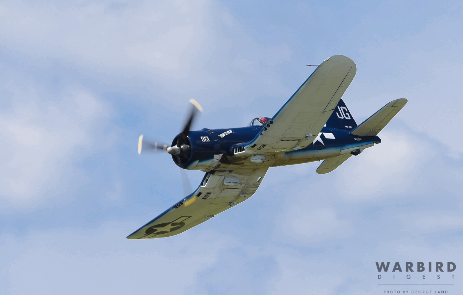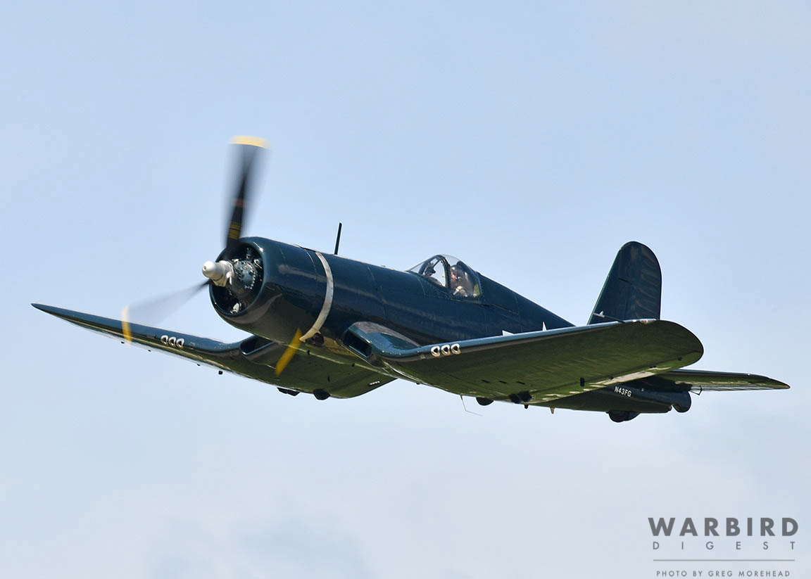 Ellenville LLC’s FG-1D Bu.67089 now painted to represent John Glenn’s Korean War era F4U-4 ‘Godspeed’ flew as ‘Skyboss’ with the American Airpower Museum for many years. (photo by George Land)