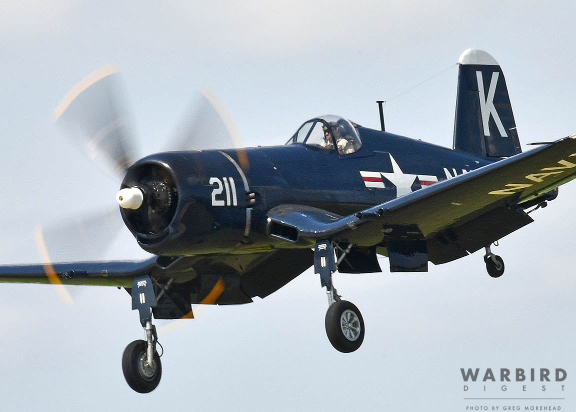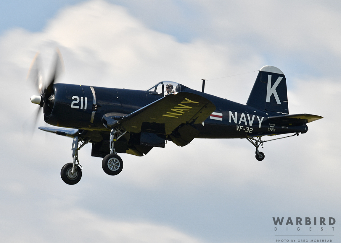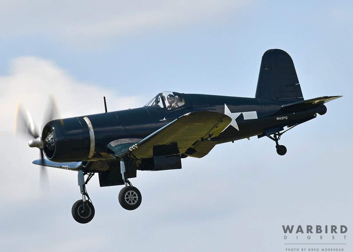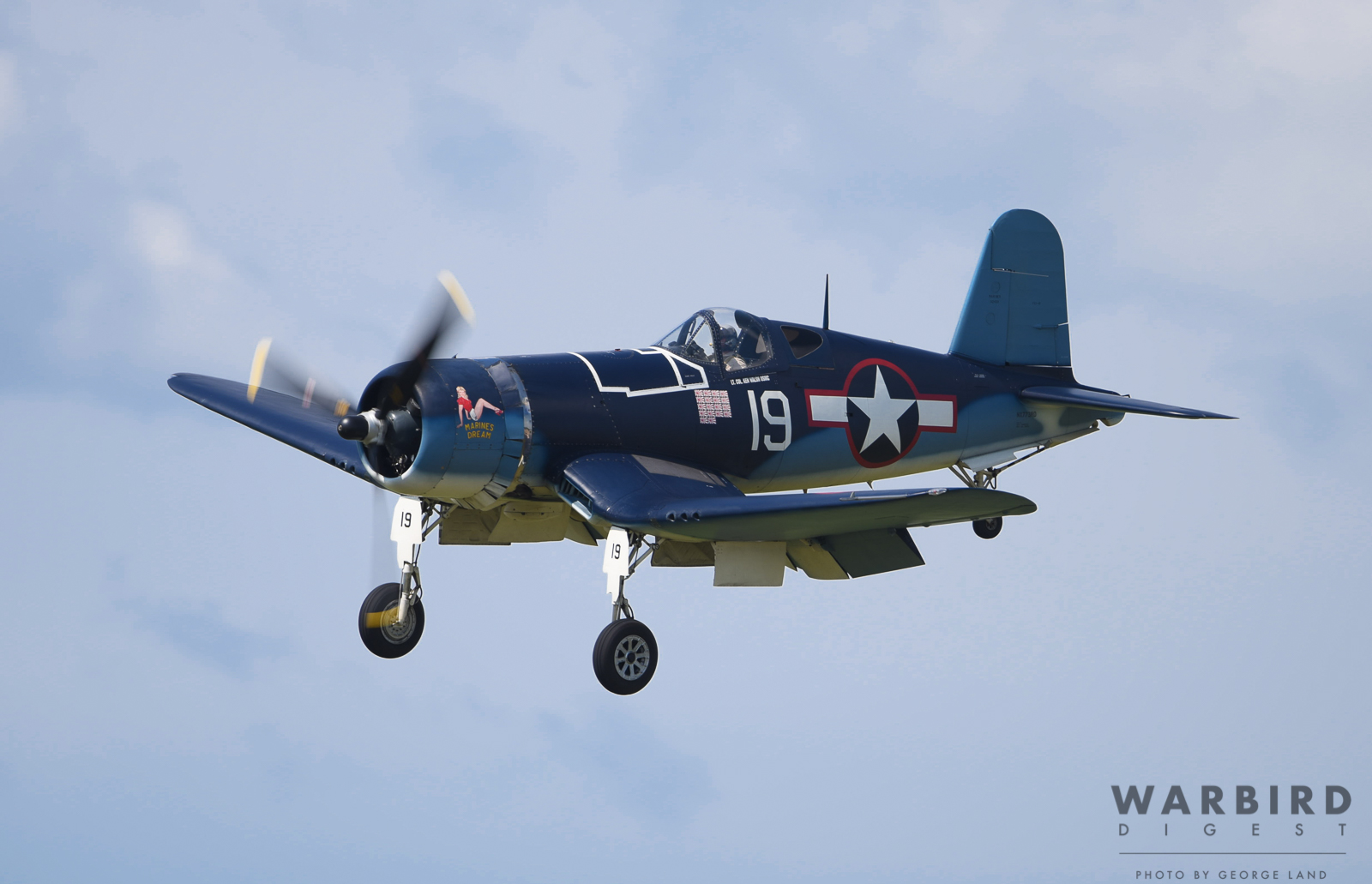 Mid America Flight Museum’s FG-1D Corsair Bu.92471 Marine’s Dream coming in to land. (photo by George Land)