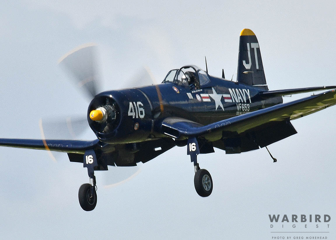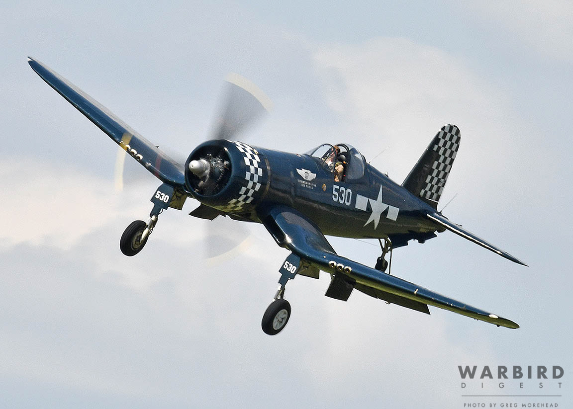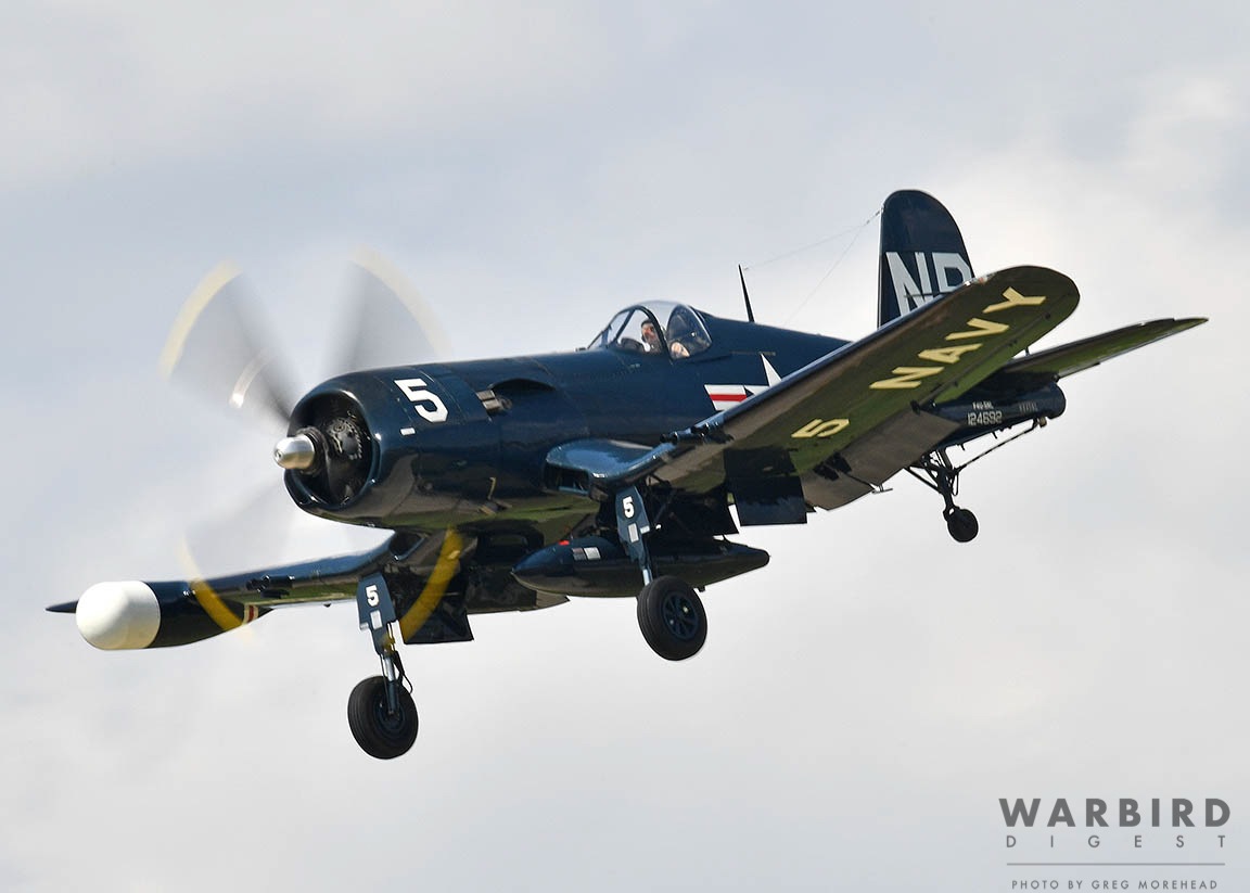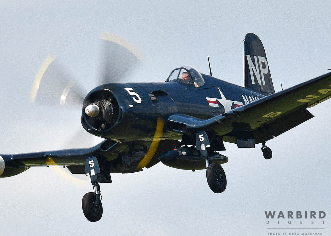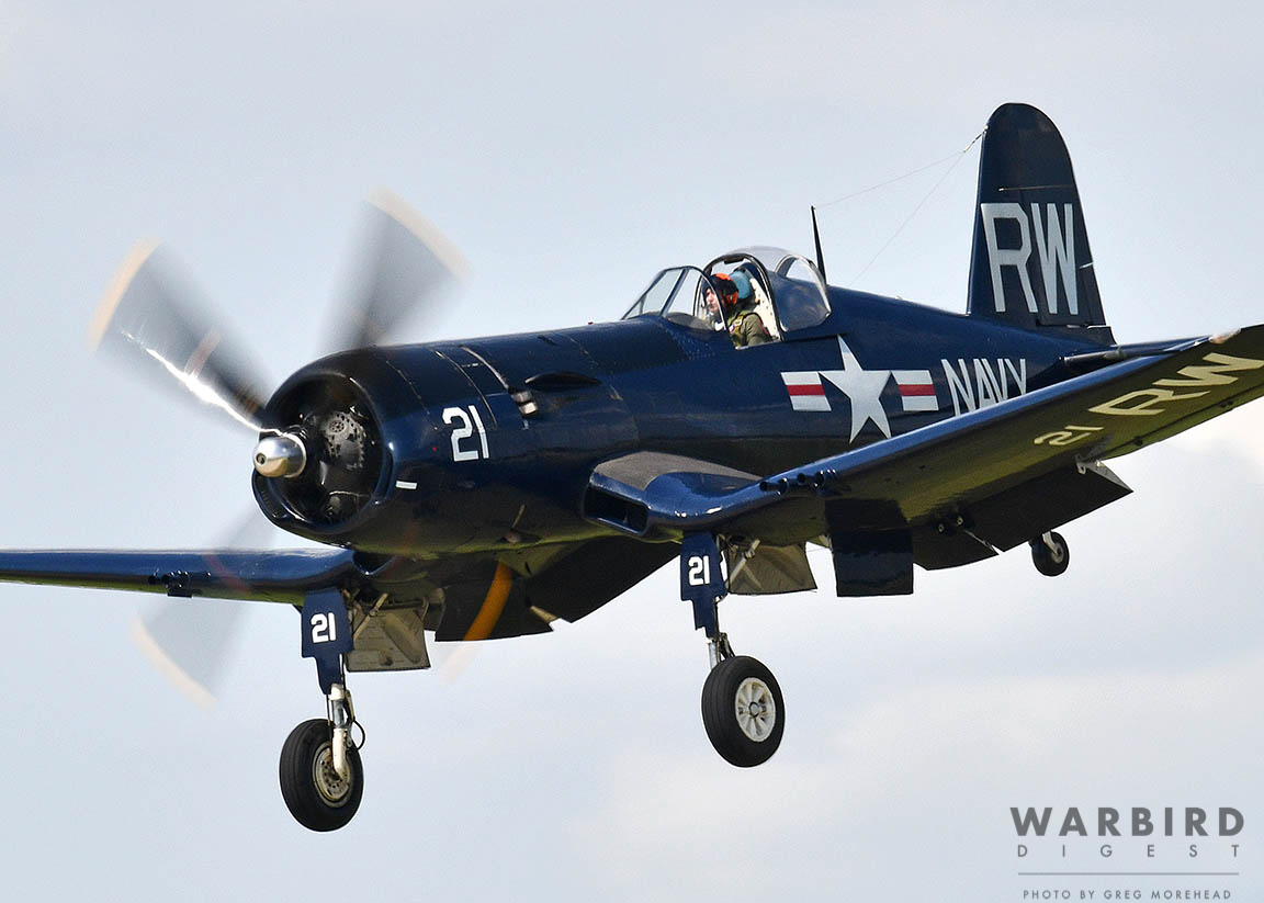 Mid America Flight Museum’s FG-1D Corsair Bu.92471 Marine’s Dream coming in to land. (photo by George Land)