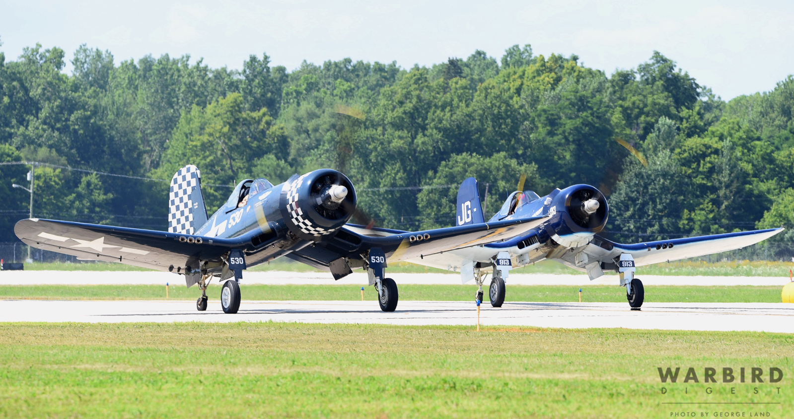 The CAF’s FG-1D Bu.92468 warming up beside Ellenville LLC’s FG-1D Bu.67089. (photo by George Land)