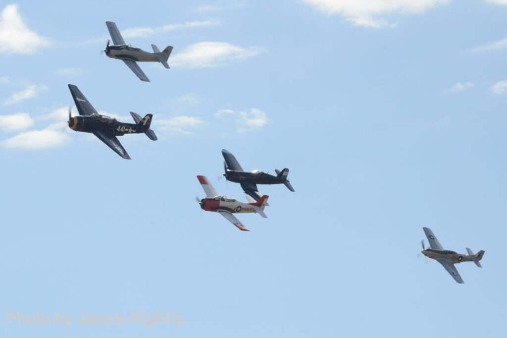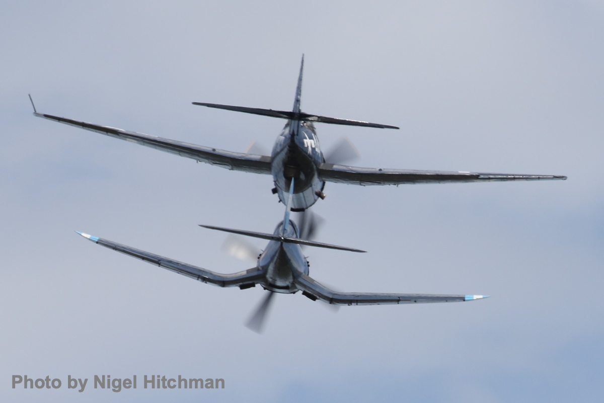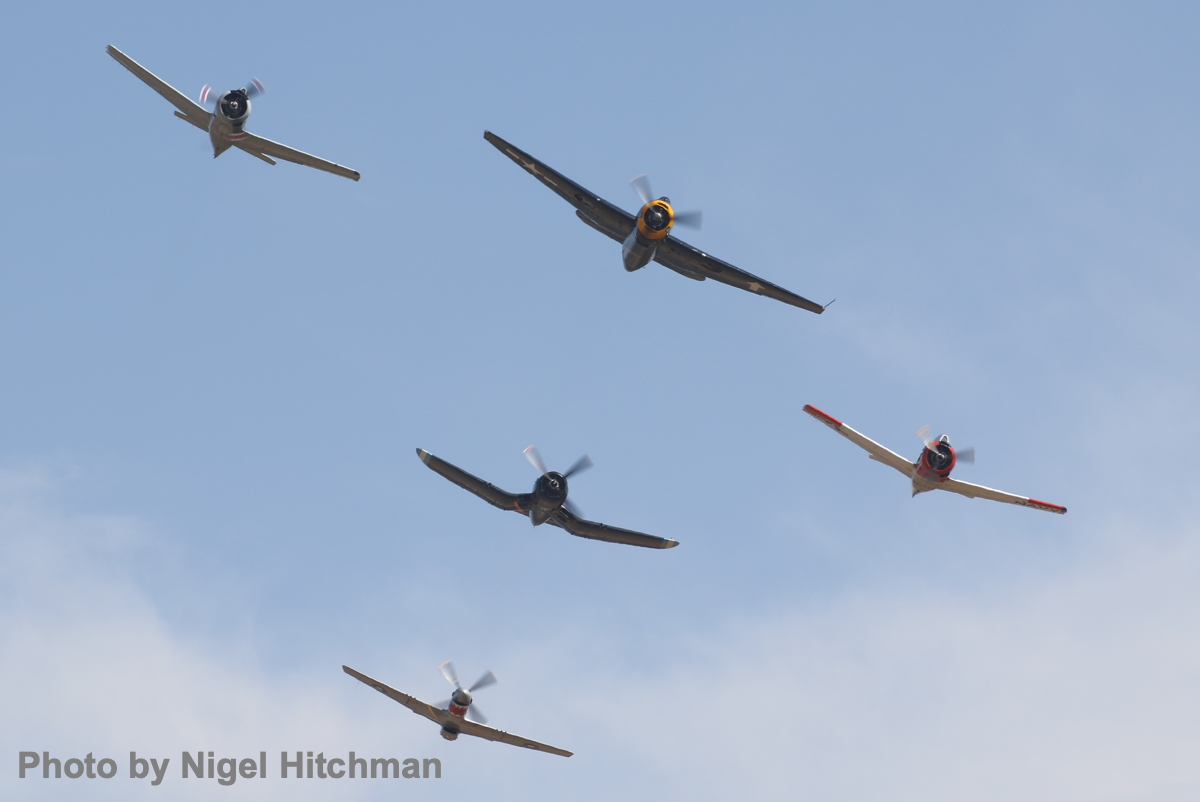 The American heavy metal, core of the show and lead of the finale Balbo were the Grumman Avenger from Paul Bennet’s organization, and Graham Hosking’s heavyweight Vought Corsair resplendent in its Honduran scheme. The finale ‘Balbo’ was led by the Grumman Avenger, and had the two T-28s, the Corsair and the 100 Squadron Mustang joining at the end.