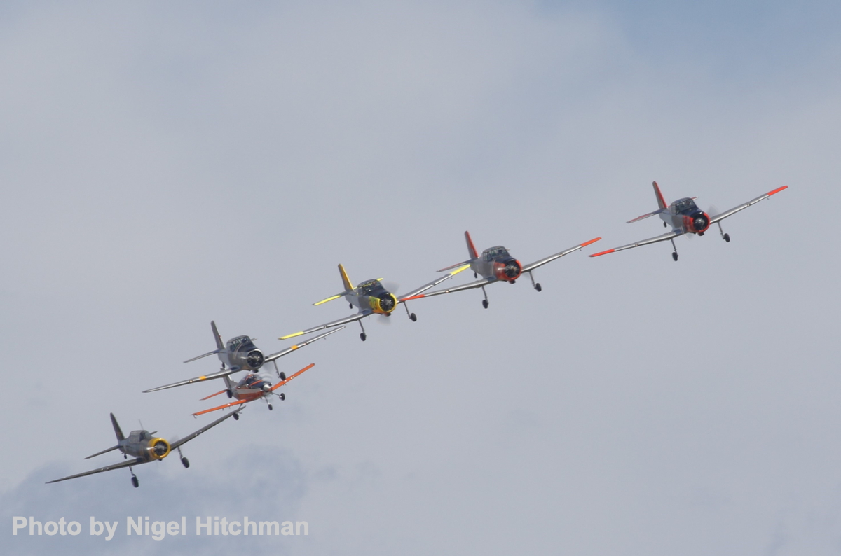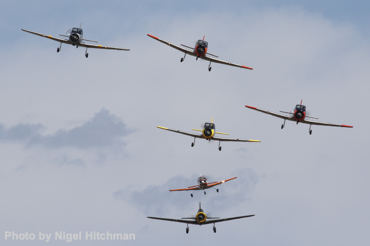 The familiar Heritage Trainers team were, on this occasion, a new combination of four CAC Winjeels and a single PAC CT-4 and a non-Australian interloper, the Vultee BT-13, with breakout aerobatic displays.