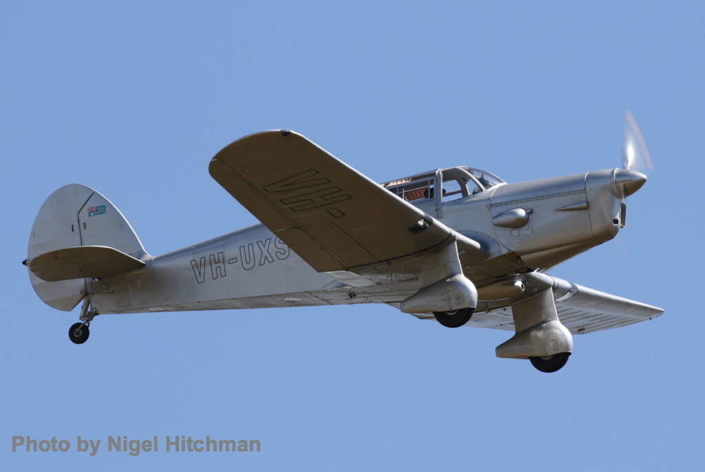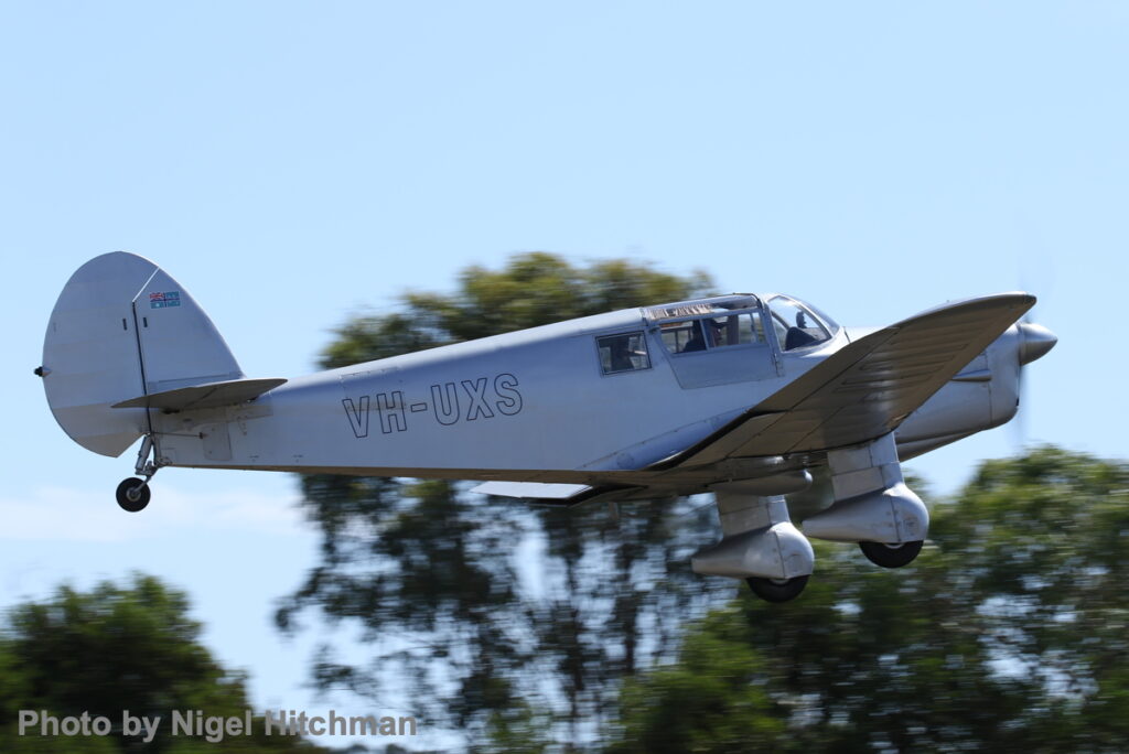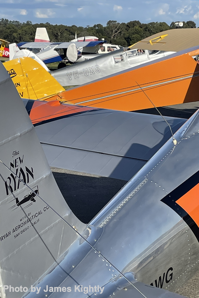 Sadly the Curtiss Robin did not fly, but the Ryan STM in Dutch Netherlands East Indies colors and the Percival Proctor VH-UXS demonstrated the classic light aircraft scene, the Proctor making its first public airshow display since restoration by Latrobe Valley Airframes & Welding Pty Ltd.