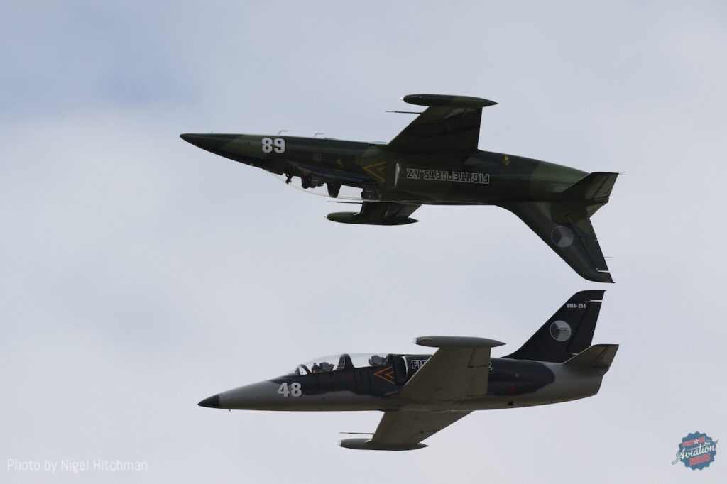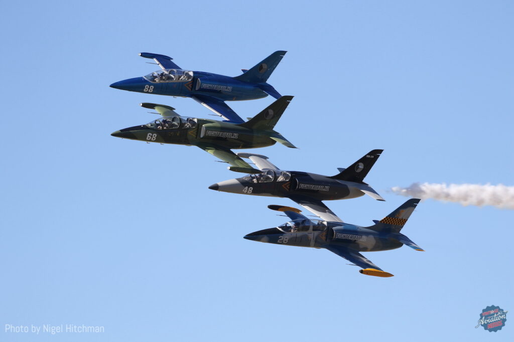 Over the years WOW has had several international civilian and warbird acts appear, including Hispano Buchóns from the Old Flying Machine Company, Hans Dittes and the Aircraft Restoration Company; and a Grumman Wildcat and Mitsubishi A6M3 Zero of the Commemorative Air Force. This year it wasn’t the aircraft that were the guests, but the pilots as Craig Mossman of Tauranga-based Fighterjets.nz supplied four Aero L-39 Albatros jet trainers for the American Eagles display team to fly. Consisting of four members of the Patriots Jet Team — Lt. Col. Dean “Wilbur” Wright USAF (Ret.), Rob “Stache” Hutchinson, John “Bordz” Posson and WOW veteran Col. Paul “Sticky” Strickland USAF (Ret.) — the American Eagles flew a tight, precise and well-coordinated routine unlike any civilian jet formation previously seen at a New Zealand airshow.