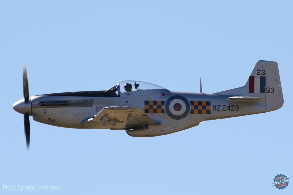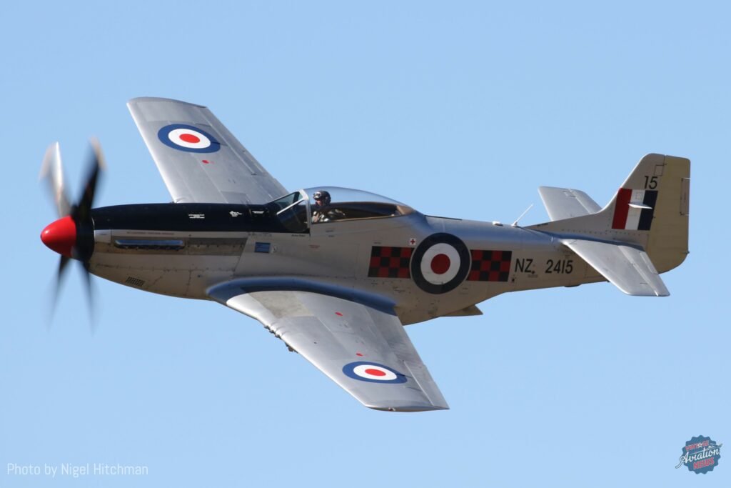 Another significant machine making its airshow debut was The Biggin Hill Trust’s North American P-51D Mustang NZ2423, ZK-BHT. This was the aircraft which made the final RNZAF service flight of the type in May 1957. As detailed in our coverage of the aircraft’s first post-restoration flight in late 2023, this machine (built with the USAAF serial 45-11513) had been saved by visionary collector the late John Smith and carefully stored – along with several tons of P-51D parts and several other historic aircraft – at his Mapua farm since the early 1960s.