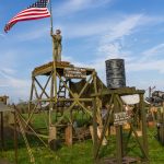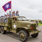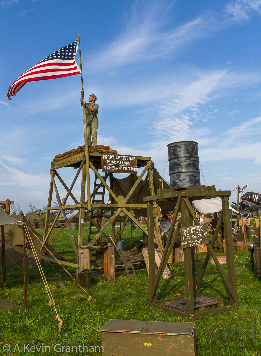 Witnessing the flamethrower demonstration was special guest Richard ‘Dick’ Donald, who earlier in the day had recounted his recollections of the the Battle of Iwo Jima, and how it felt seeing the flag raising on Mount Suribachi from his ship, the USS Melvin R Nawman (DE-416). “Seeing that flag go up was a magnificent sight”, said Donald. “We were losing that battle and morale was very low. At a certain time that beautiful morning the flag went up. The ships started blowing their horns and the Marines took off their helmets and cheered. It was my fifth invasion and something happened to me. At 19, I realized why we kids were willing to die for that flag.”