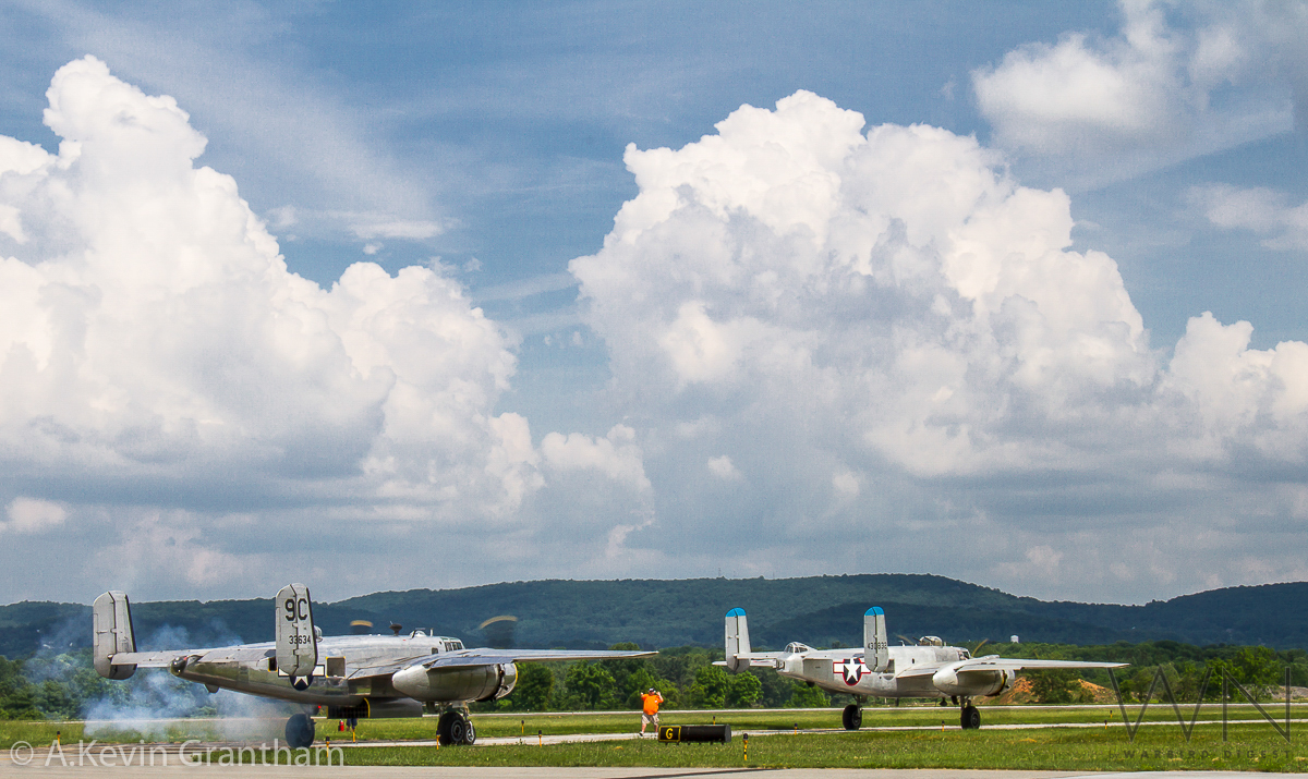 Tom Duffy’s B-25J Takeoff Time, the Delaware Aviation Museum’s B-25J Panchito, Yankee Air Museum’s B-25D Yankee Warrior, and of course, the MAAM’s own B-25J Briefing Time represented the medium bomber force. It is amusing to note that there is a bit of a friendly rivalry going on between the crews who polish their Mitchells and the ones who do not. Your author will let you figure out which is which.