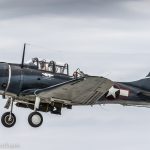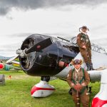 The flying part of the show featured flights of Liaison aircraft, trainers, fighters, and bombers. Greg Shelton flew his FM-2 at very low altitude and did things with his Wildcat that defy description and are better understood by personally witnessing his performance. So, if you have a chance to see Shelton and his Wildcat—do not miss it! Kevin Russo provided additional aerobatic thrills in his SNJ, followed by Thom Richard flying the American Airpower Museum’s Curtiss P-40M Warhawk.