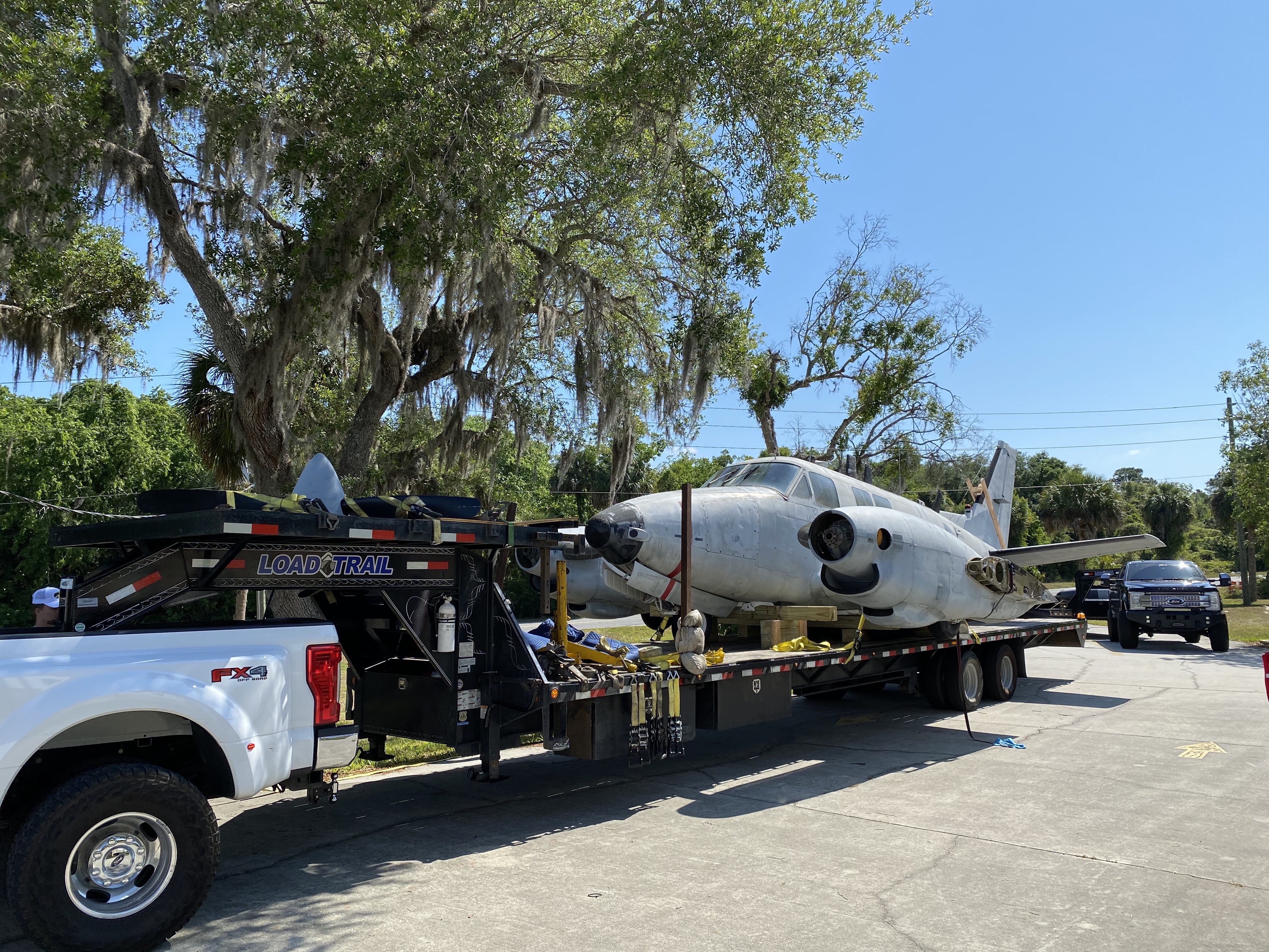Dreamworx Aviation, an aircraft transportation company with over 20 years of experience in aircraft recovery and transportation. helped move the aircraft from its temporary home at Orlando Executive Airport to her new home in Titusville.