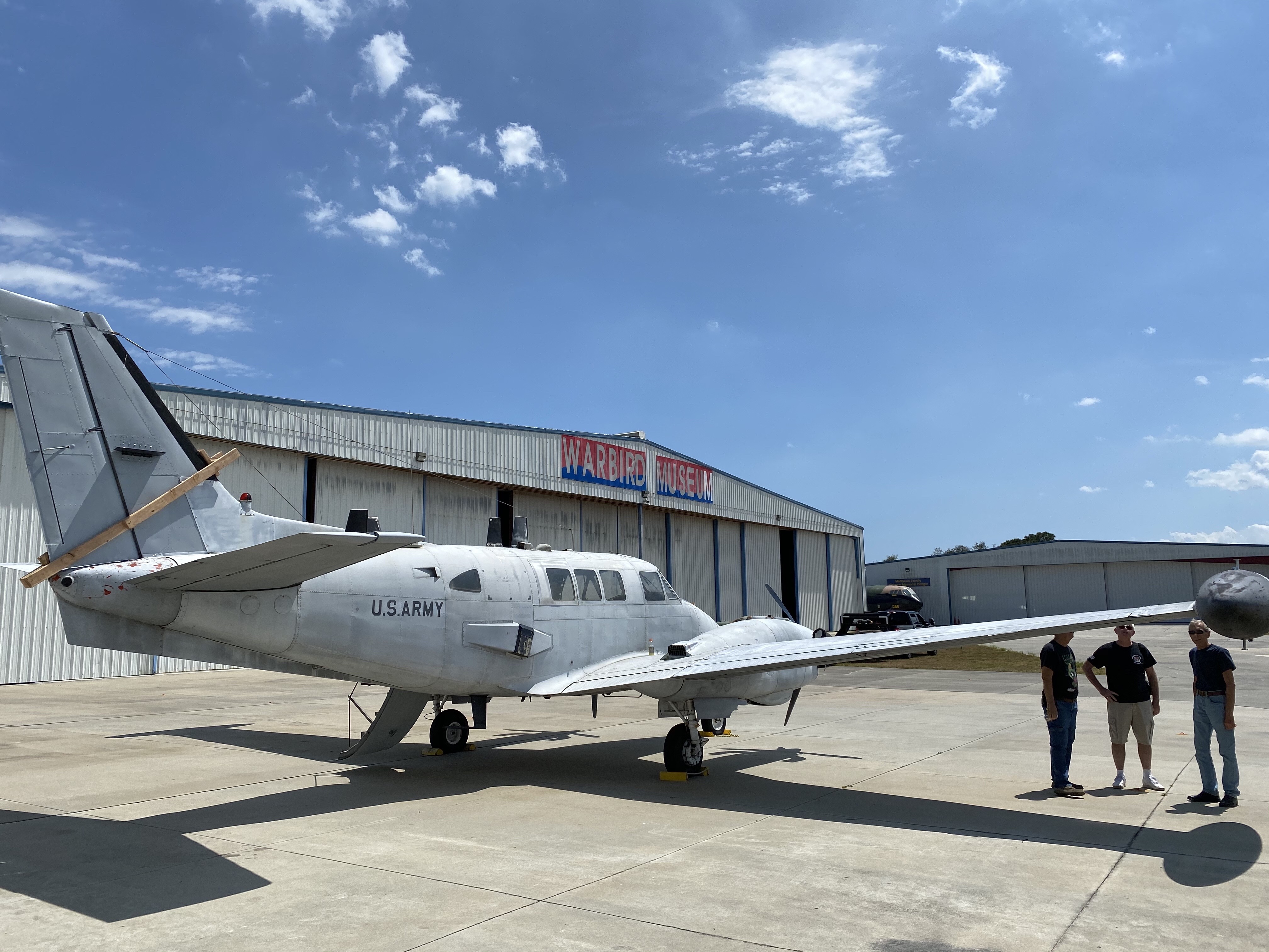 After nearly five years of diligently trying to raise funds to place an ex-U.S.Army Beechcraft RU-21A Ute on display next to B-52D 56-0687 at Orlando International Airport, (MCO), it ultimately became clear to the Board of Directors of the 138th Aviation Company Memorial, Inc. that the effort was taking far longer than anticipated to achieve. In the interest of the aircraft’s preservation therefore, the hard decision was made to donate the aircraft to the Valiant Air Command’s Warbird Air Museum in Titusville, Florida.