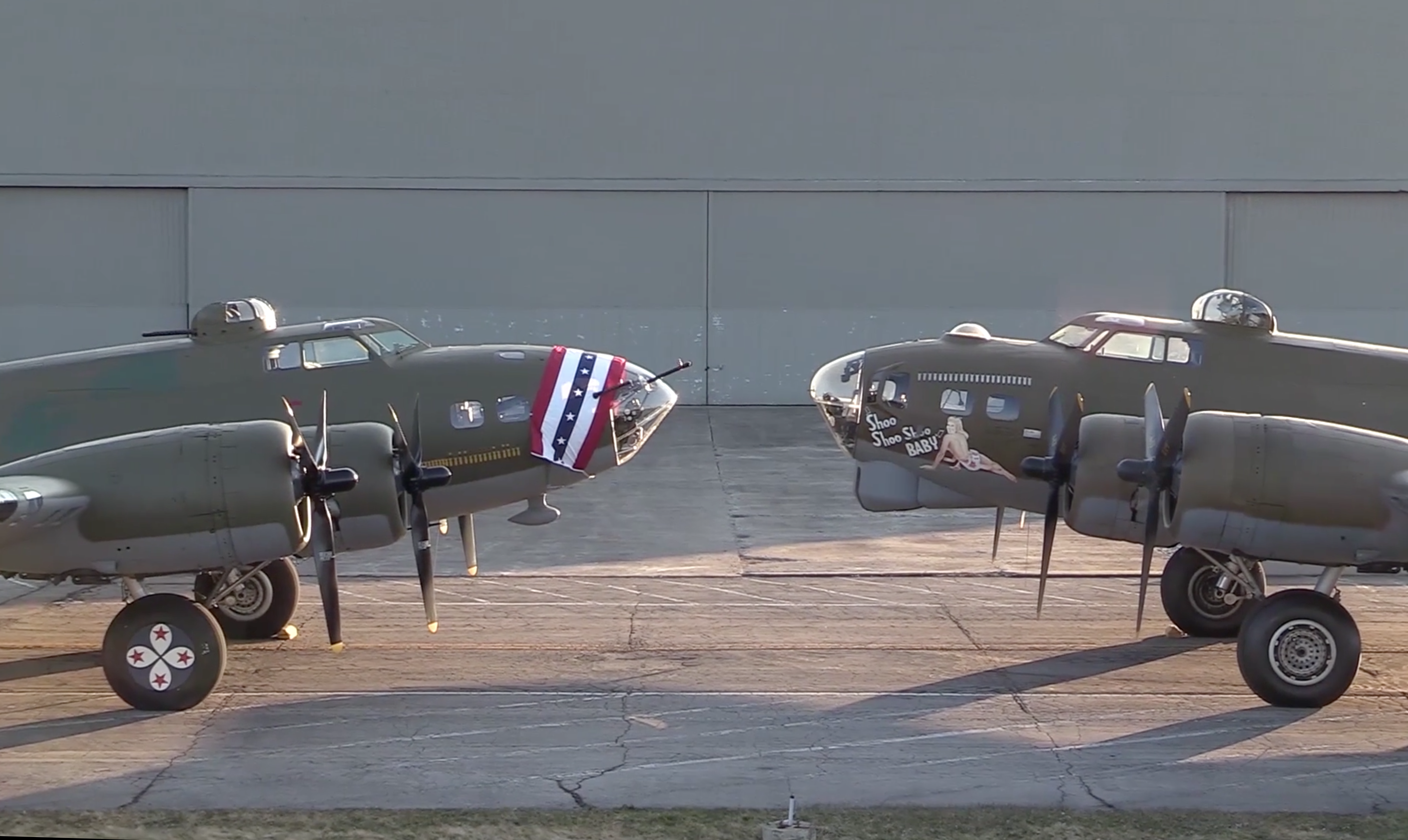 The National Museum of the United States Air Force has officially completed the restoration of their historic Boeing B-17F Flying Fortress Memphis Belle. A few days ago, Museum personnel moved the famous bomber into her new home within the museum’s WWII Gallery in anticipation of the exhibition’s opening celebrations in mid-May. Before the ‘Belle moved indoors again, she met for a brief moment outside with another combat veteran Flying Fortress moving in the other direction; B-17G 42-32076 Shoo Shoo Shoo Baby. Interestingly, both B-17s served in the 91st BG out of Bassingbourn, England during WWII, though not concurrently. The latter Fortress is going into temporary storage before eventually moving to the Smithsonian’s National Air & Space Museum collection. Readers will remember that some years ago the Air Force Museum promised Shoo-Shoo-Shoo Baby to NASM in exchange for their unique Boeing B-17D Swoose 40-3097 and an unrestored B-17G 44-83814 (now fully restored and on display at the National Mighty Eighth Museum in Savanah, Georgia).