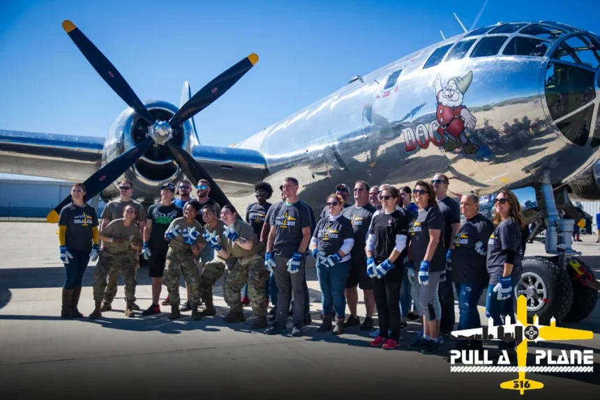 B-29 DOC and the WSU TECH Foundation will host the fourth Pull a Plane for Education, March 8, 2025, at the B-29 DOC Hangar, Education and Visitors Center. The event raises funds for WSU TECH student support, creating career opportunities in aviation and beyond. Additionally, it supports the upkeep of B-29 DOC, ensuring it remains airworthy and serves as a living museum to honor the Greatest Generation and celebrate Wichita’s rich aviation heritage.