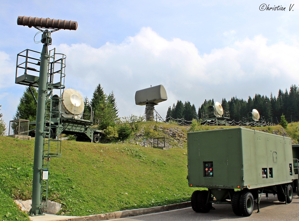 radar and tracking antennae from the Nike Hercules SAM site at Base Tuono in the so-called Integrated Fire Control area (IFC). Originally, these were located further up on the top of Mount Toraro, but that site was dismantled some time after the base decommissioning. It made more sense to keep the equipment in the museum more centrally located, hence the setting up of the IFC at its present position. (photo by Christian Vaccari)