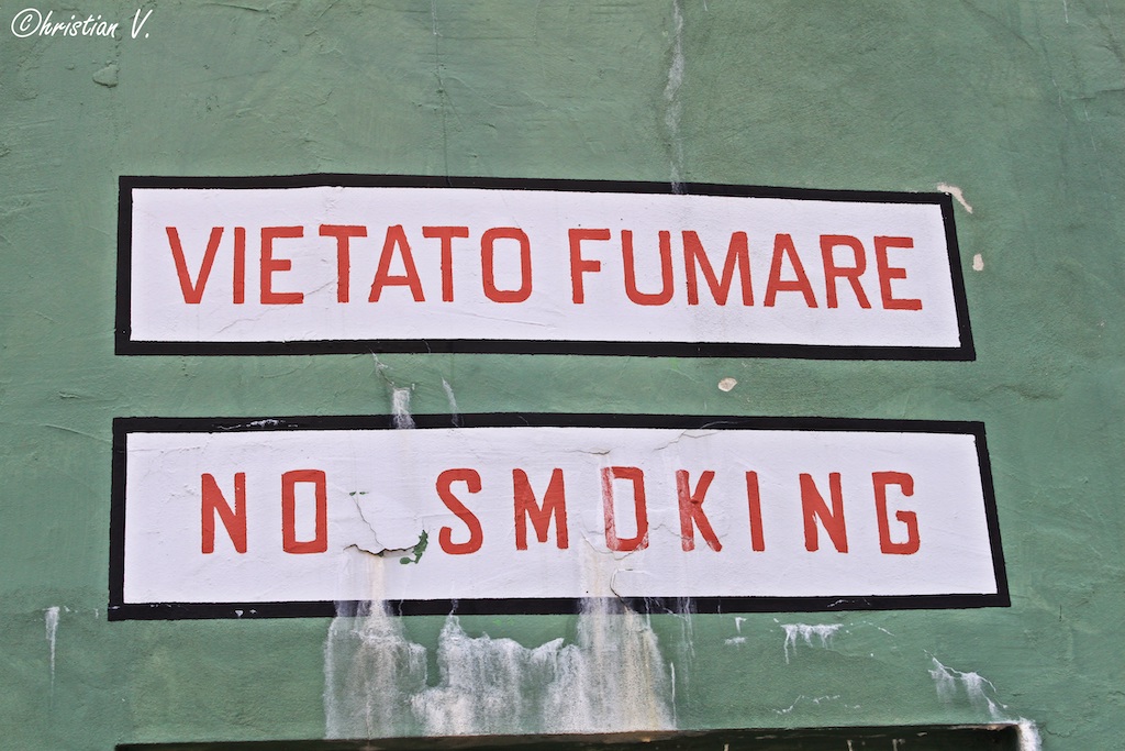 A ‘no smoking’ sign in the missile storage and maintenance building. (photo by Christian Vaccari)