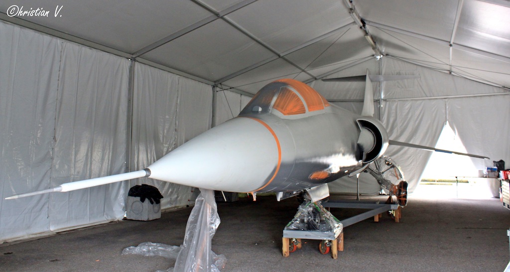Another view of the Starfighter inside the restoration tent. This aircraft is an F-104S-ASA which served in the Italian Air Force as MM6781. Until May, 2017, this aircraft had spent many years on external display, mounted on concrete blocks at the Aviosuperficie Guido Paci in Montegiorgio Ascoli Picenoa. A Fiat G.91R is expected to join the Starfighter at the museum before too long. (photo by Christian Vaccari)