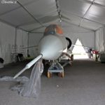 A former Italian Air Force F-104 Starfighter is on display inside a temporary shelter at Base Tuono. As you can tell, the aircraft is presently undergoing restoration. (photo by Christian Vaccari)