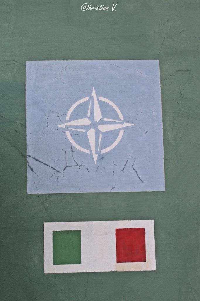 The iconic NATO symbol (above the Italian national flag) is present a several locations on the base, indicative of its being part of NATO’s defense of Europe infrastructure. (photo by Christian Vaccari)