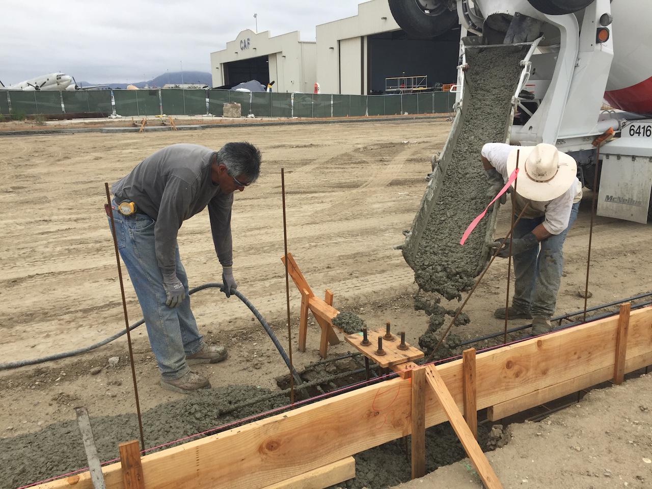 PRESS RELEASE – Construction is underway on a new, 32,800 sq. ft. hangar complex, part of a multimillion dollar plan by the Commemorative Air Force Wing to develop a modern WWII aviation museum that will attract more U.S. and world visitors to Ventura County wanting to see its historical archives and flying fighter, bomber, training, and other aircraft on display.The Wing has run out of space in the current CAF complex, built 14 years ago, consisting of a maintenance/restoration hangar, and adjoining museum/and event hangar.Concrete has been poured around the exterior perimeter of the new hangar building including the big foundation pads where the main steel beam framework will be bolted into place. Once all the foundation cement and flooring is poured and cures, then attaching the steel sections begins.