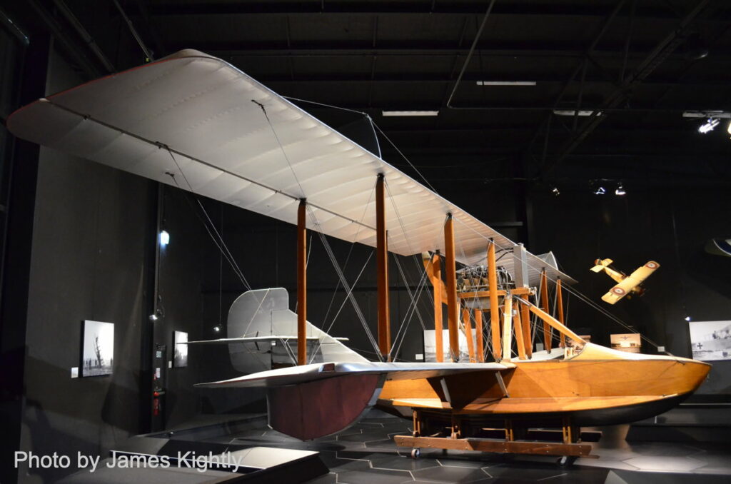 In contrast, Curtiss HS-2L G-CAAC, named ‘La Vigilance’ and operated by Laurentide Air Service Limited, was Canada’s first post Great War bush plane, and notched up numerous firsts, including Canada’s first forestry patrol and first aerial timber survey, both in 1919; as well as the first regular Canadian airmail service, in 1924. The reconstruction (displayed alongside the original conserved hull) is the only HS-2L in the world.