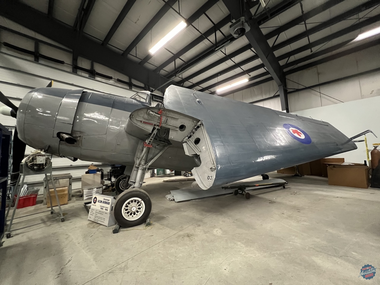 Grumman Avenger 85861, a TBM-3E model built late in WWII at General Motors’ Trenton plant, was one of 4,657 Avengers produced for the U.S. Navy. It featured an AN/APS-4 radar pod and was among 74 Avengers purchased by the Royal Canadian Navy in 1950. After a throttle failure forced a ditching in Bedford Basin in 1953, it remained underwater until raised in 1972 for training. Restored by VT 406 Squadron, it was displayed as a gate guardian at CFB Shearwater but deteriorated outdoors. In 1999 it was moved indoors for preservation, then relocated to the Shearwater Aviation Museum in 2005.