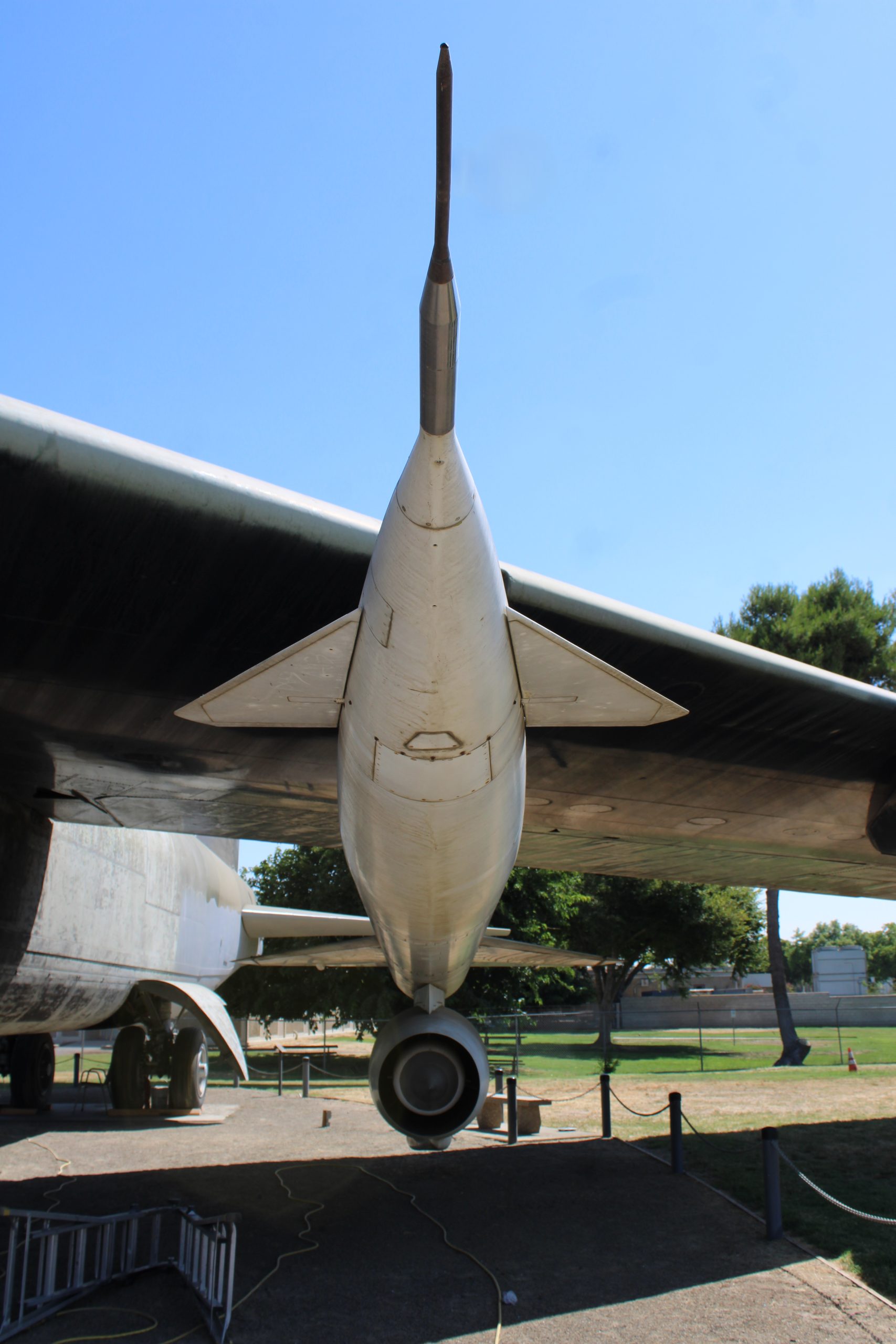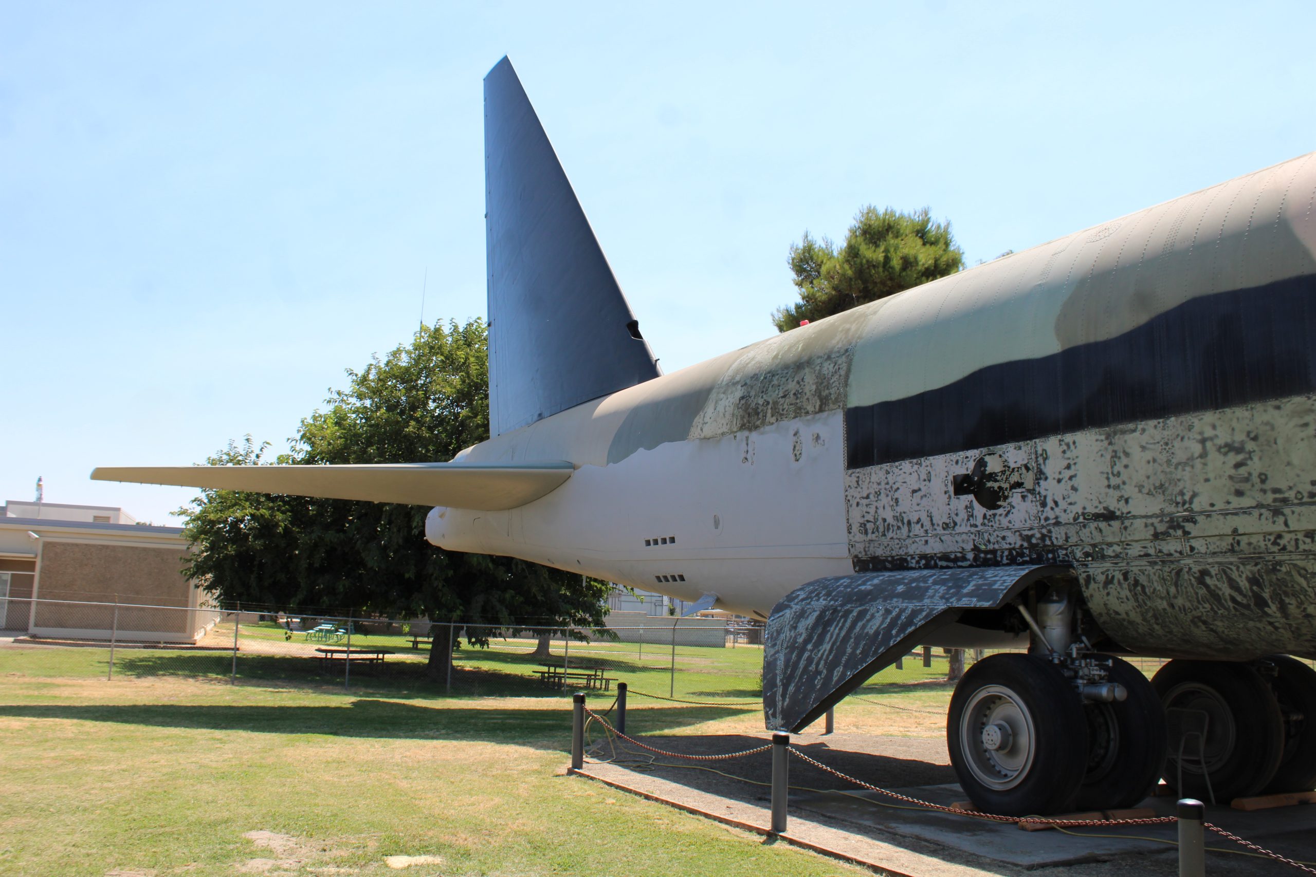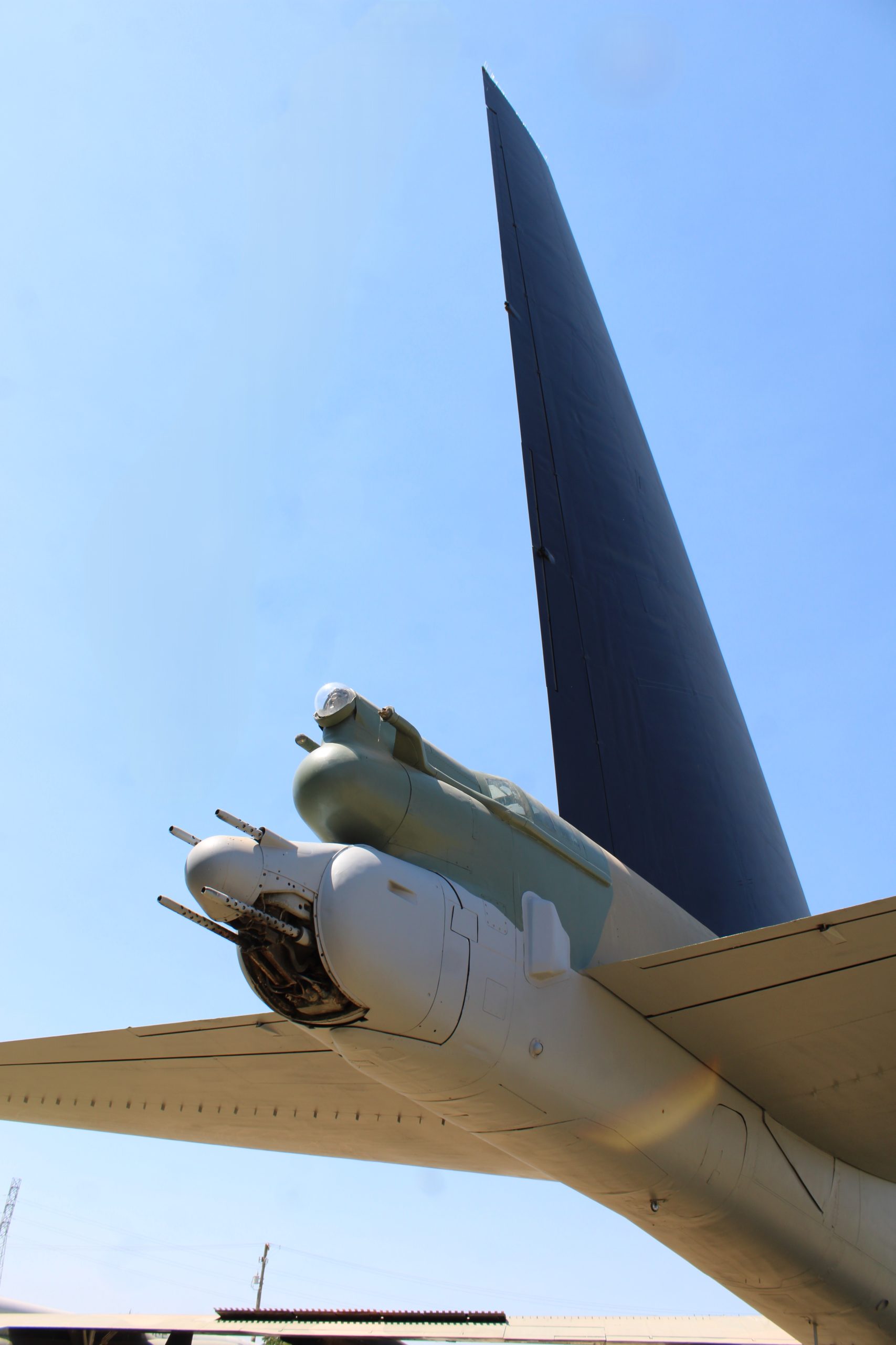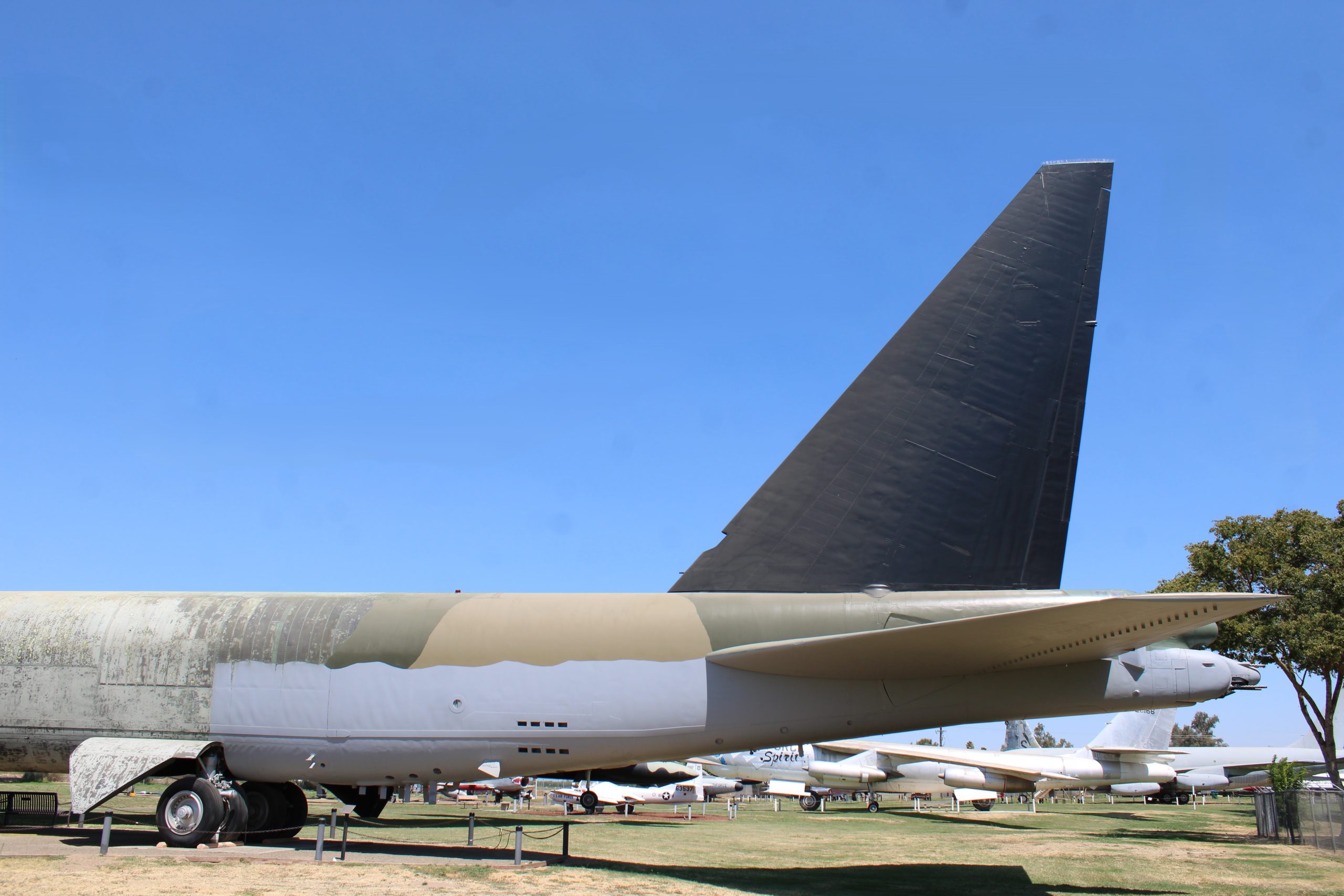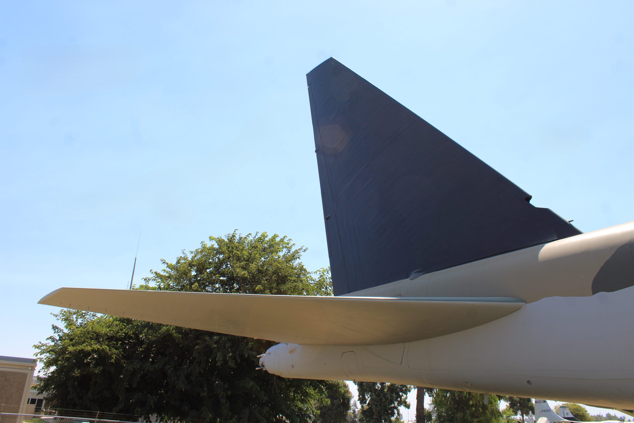 Just as an FYI, the vertical stabilizer wasn’t “removed”. All B-52 aircraft have hinged vertical stabilizers that can be flopped over to the right. You just don’t see it don’t very often because it requires a crane to lower and raise it. It was originally to allow the tail of the aircraft to fit in a hanger where it could be worked on out of the weather.