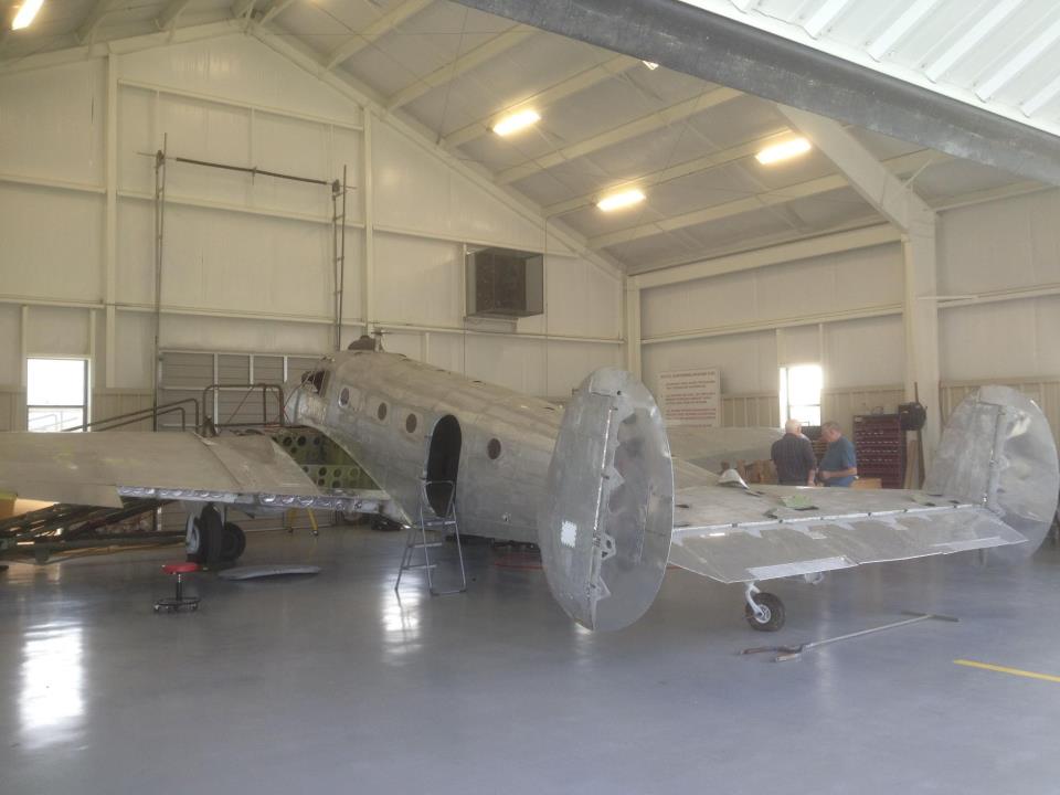 Beechcraft 18R under restoration (Image Credit: Chennault Aviation and Military Museum)The museum which had become incorporated into the state’s system of museums recently found its funding in jeopardy due to budget cuts brought on by the recession and the Friends of Chennault Aviation and Military Museum (FCAMM) has dedicated itself to finding ways to keep the museum open. The state agreed to allow FCAMM to directly assume the some of the operating expenses and the state would bill the Friends for other expenses biannually. The relationship the group built while working with Louisiana Secretary of State, Tom Schedler and their demonstration of resolve by taking on the funding the museum brought an unexpected dividend recently when Schedler’s office announced that his office had managed to save some money in their operations and therefore they would be no additional billing issued to the the museum for the remainder of the year, saving FCAMM approximately $40,000.