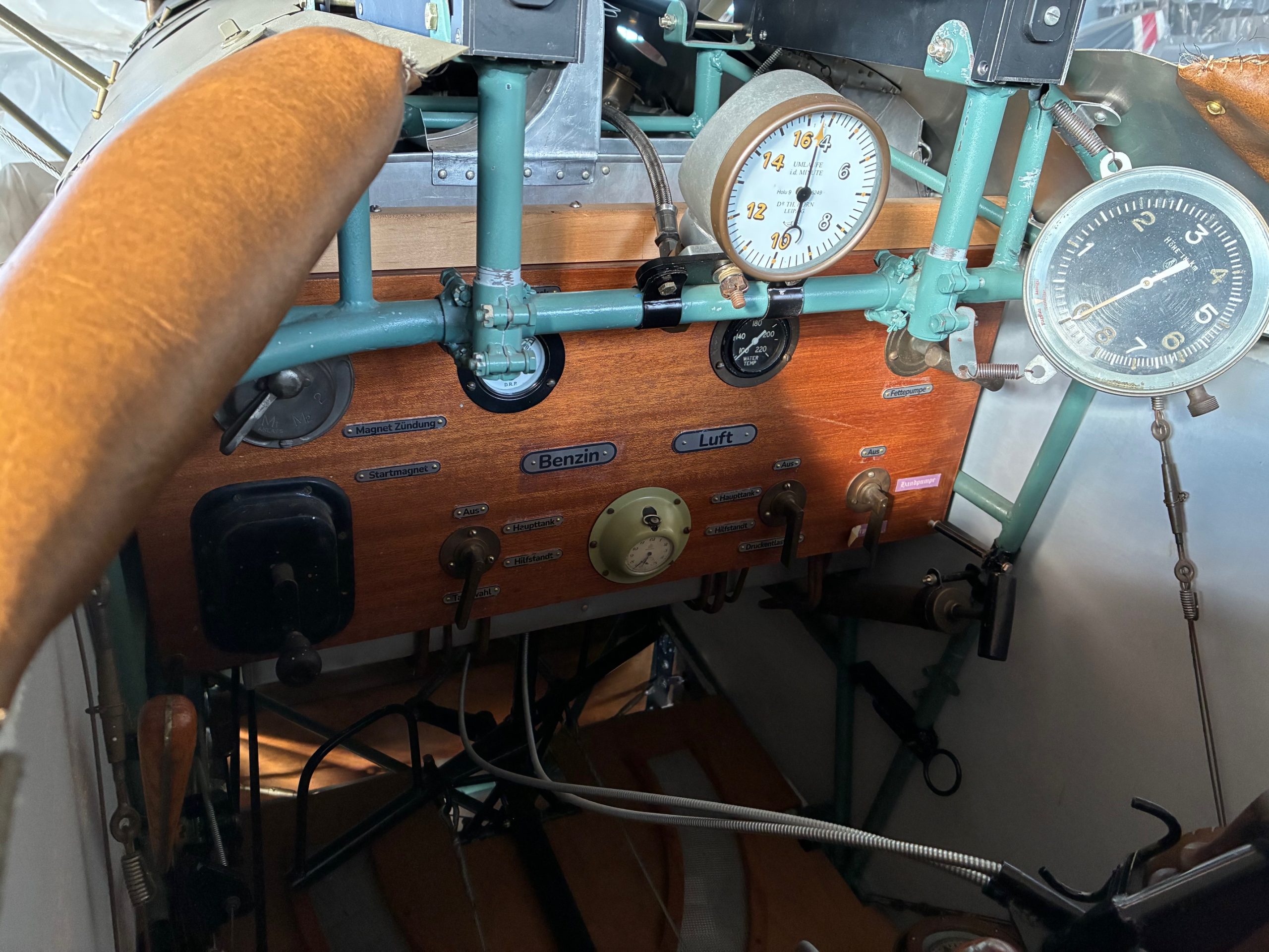 Since our last update, the aircraft has been fitted with a set of replica IMG 08/15 “Spandau” machine guns, a wooden propeller, period-correct flight instruments, and a small circular mirror fixed above the open cockpit on the trailing edge of the top wing’s center section. On November 6, 2025, the museum held its 22nd Annual Air & Space Gala, and the Fokker D.VII was rolled out for display during the event. Currently, the museum is still keeping the aircraft in storage for the time being, but according to museum curator Joshua Stoff, the museum will be placing the Fokker D.VII in a new building that will be constructed for the museum and opened within the next year, commenting “We hope to have a groundbreaking this Fall for the new building. Trying to finalize funding now.” Additionally, a post on the museum’s official Facebook page states that “the aircraft is expected to be exhibited indoors as part of the Cradle of Aviation’s expanded gallery space over the next year or so.”