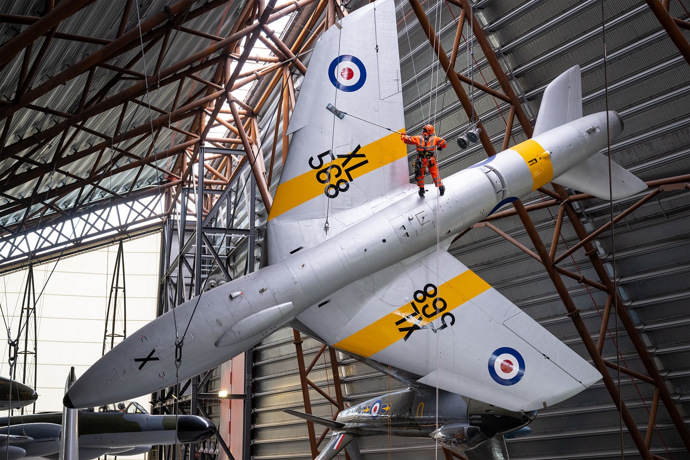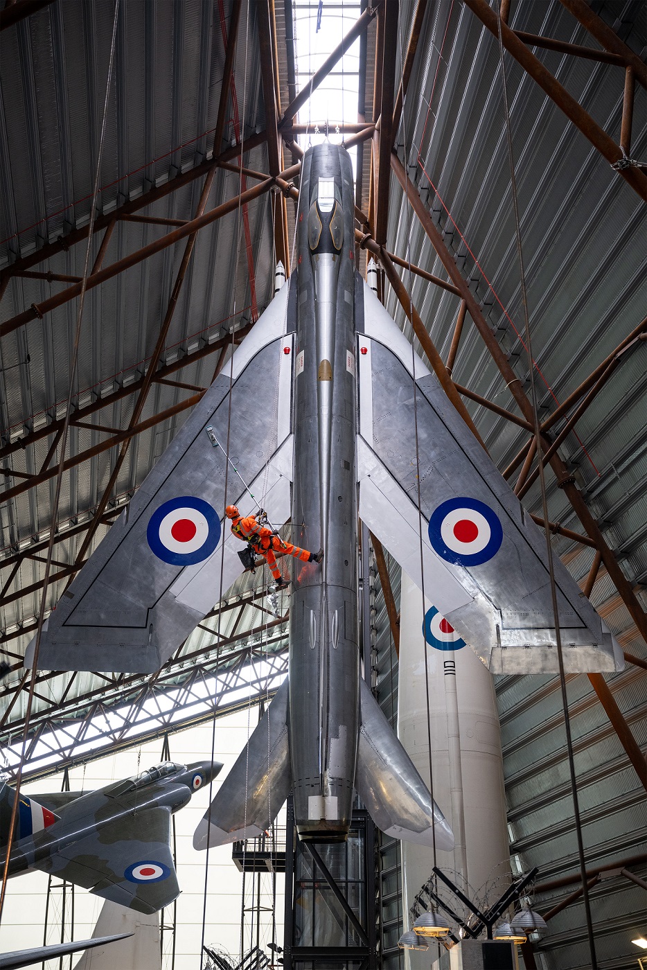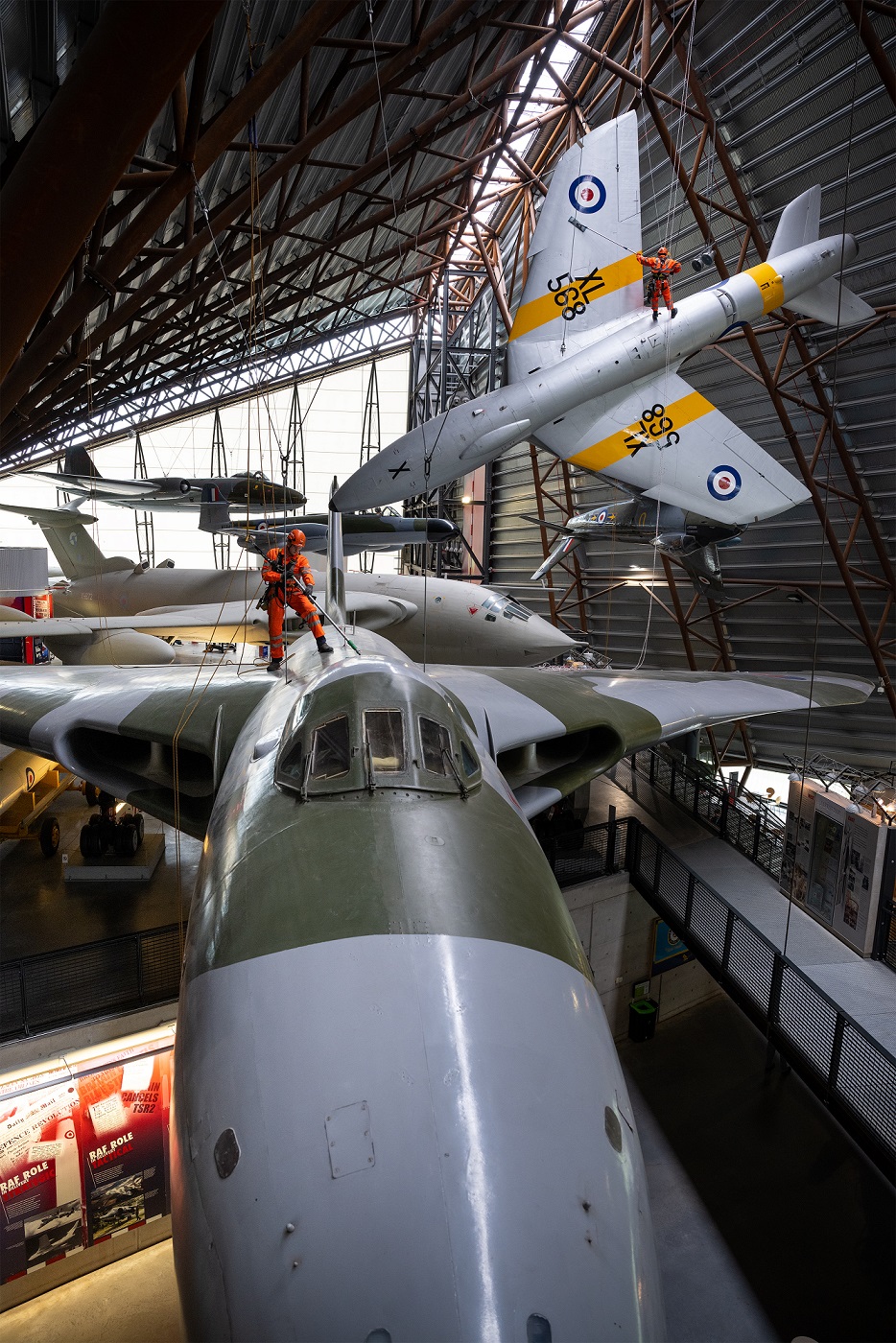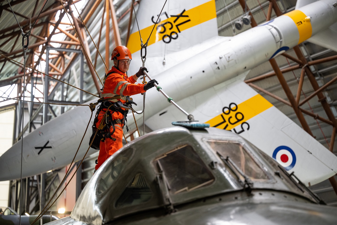 Tom Hopkins, Curator at RAF Museum Midlands said: ‘All the aircraft and vehicles within the RAF Museums collection undergo a regular inspection by our Technicians and Volunteers, however, those suspended from the ceiling of our National Cold War Exhibition are 100ft high in some places and require a specialist team to carry out the work at dizzying heights.’