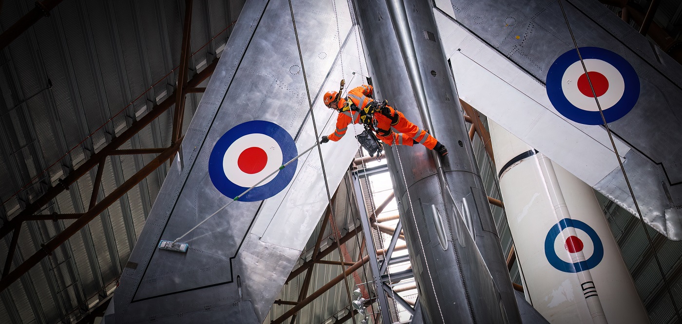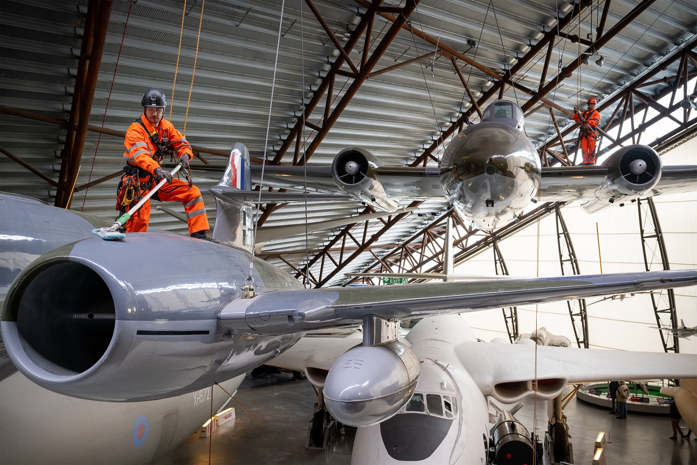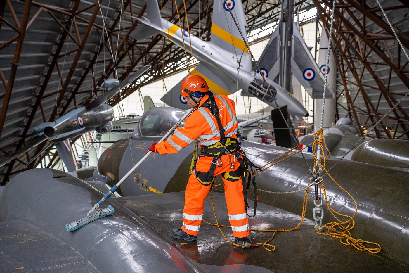 During the cleaning, the Museum will remain open to visitors who can see the high-flying team from Rappel, industrial rope access specialists, in action. The Museum’s National Cold War Exhibition features 19 aircraft, tanks, vehicles, models, and memorabilia, and is the only place in the world where people can view all three British V-Bombers, the Vulcan, Victor, and Valiant, together and under one roof.