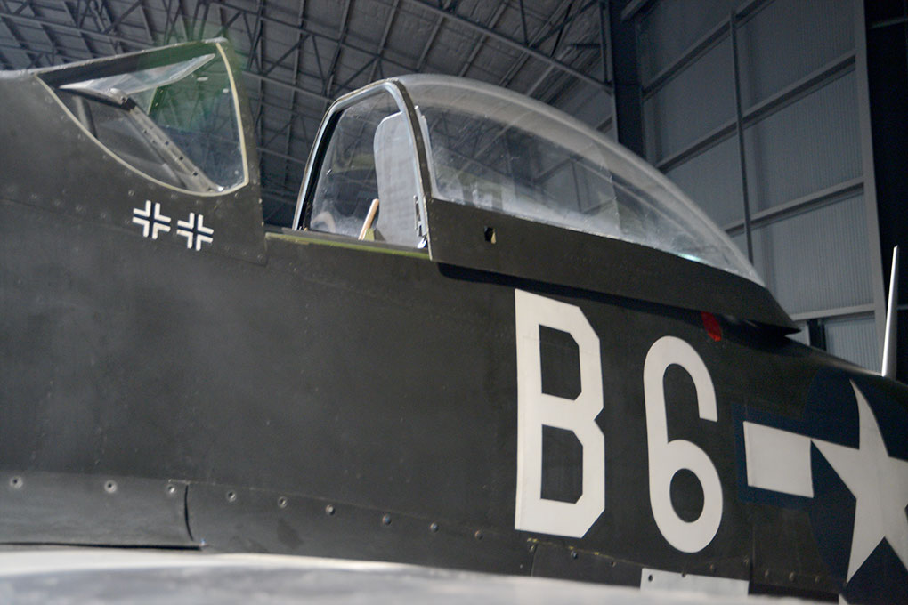 A closeup of the Mustang’s cockpit – note the two victory markings just beneath the windscreen. (image via Hunter Fighter Collection)