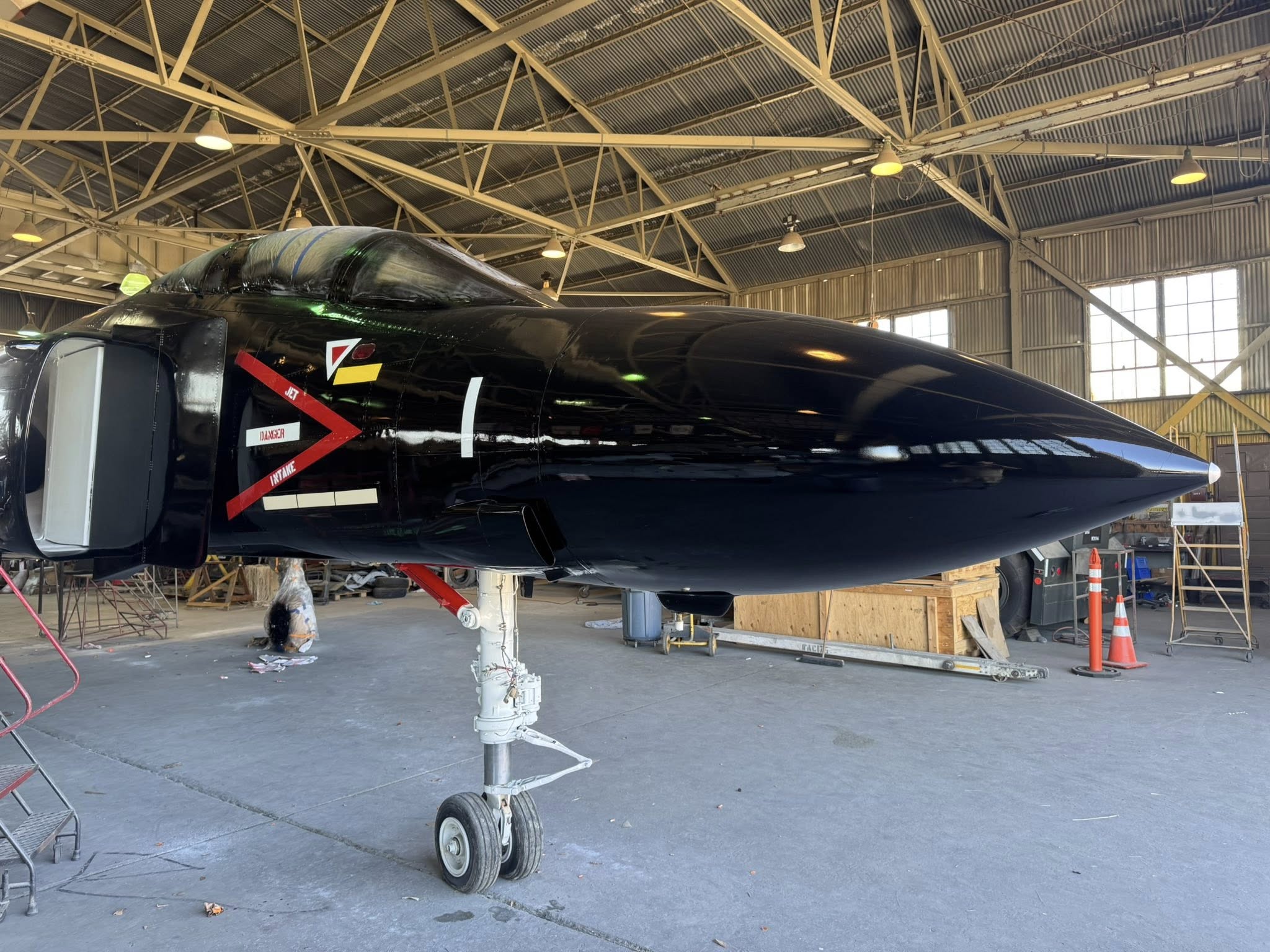 F-4S Phantom II BuNo 155539 in the final stages of painting before being rolled out of the Castle Air Museum’s restoration hangar. (Castle Air Museum via Greg Stathatos)