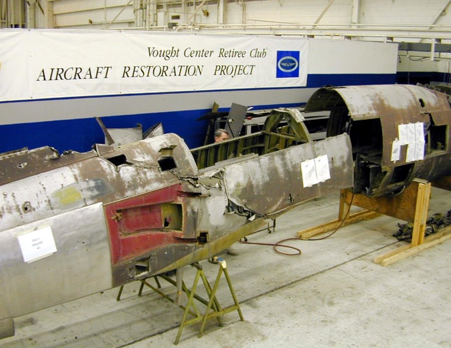 By 1980, the aircraft was brought to the New England Air Museum at Bradley International Airport in Windsor Locks, CT, where some restoration work was carried out on the rear of the aircraft. By 2002, however, it was decided that the Vought Aircraft Heritage Foundation (now the Vought Heritage Foundation), a group of Vought retirees dedicated to restoring examples of the company’s products, would take over the restoration. The aircraft was then brought back to Grand Prairie to have its restoration completed. When the aircraft arrived in October 2002, the first parts on BuNo 122479 to be restored by the VAHF team were the vertical and horizontal tail assembly, along with some skin panels on the tail. Eventually, the two halves off the fuselage, which were originally disassembled for ease of transport, were reunited.