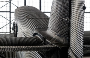 For us “AvGeeks” with cameras, we were stopped in our tracks when we entered the restoration hangar and saw the only surviving B-17D, named The Swoosh. This earliest remaining B-17 variant has the ‘shark-tail’ vertical, side gun blisters, and under-mounted ‘bathtub’ belly gun position. The Swoose was in the Philippines when the war started and flew some of the first combat missions against the Japanese. It was later evacuated to Australia and became a VIP transport, which is why it survived the war. This aircraft will be an amazing addition to the museum when restored and on the museum floor for public viewing around 2030. We also saw the B-17G Shoo Shoo Shoo Baby, broken down into major sections, as it was being readied for transport to the Smithsonian National Air and Space Museum’s Steven F. Udvar-Hazy Center. This aircraft has been in the care of the museum since 1988 and was shipped to Udvar-Hazy in late August where it will be reassembled for display.