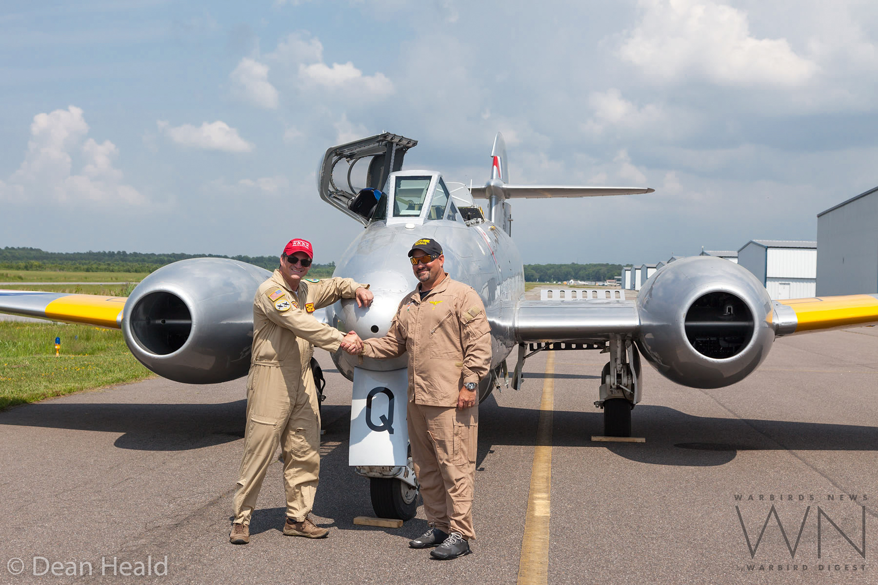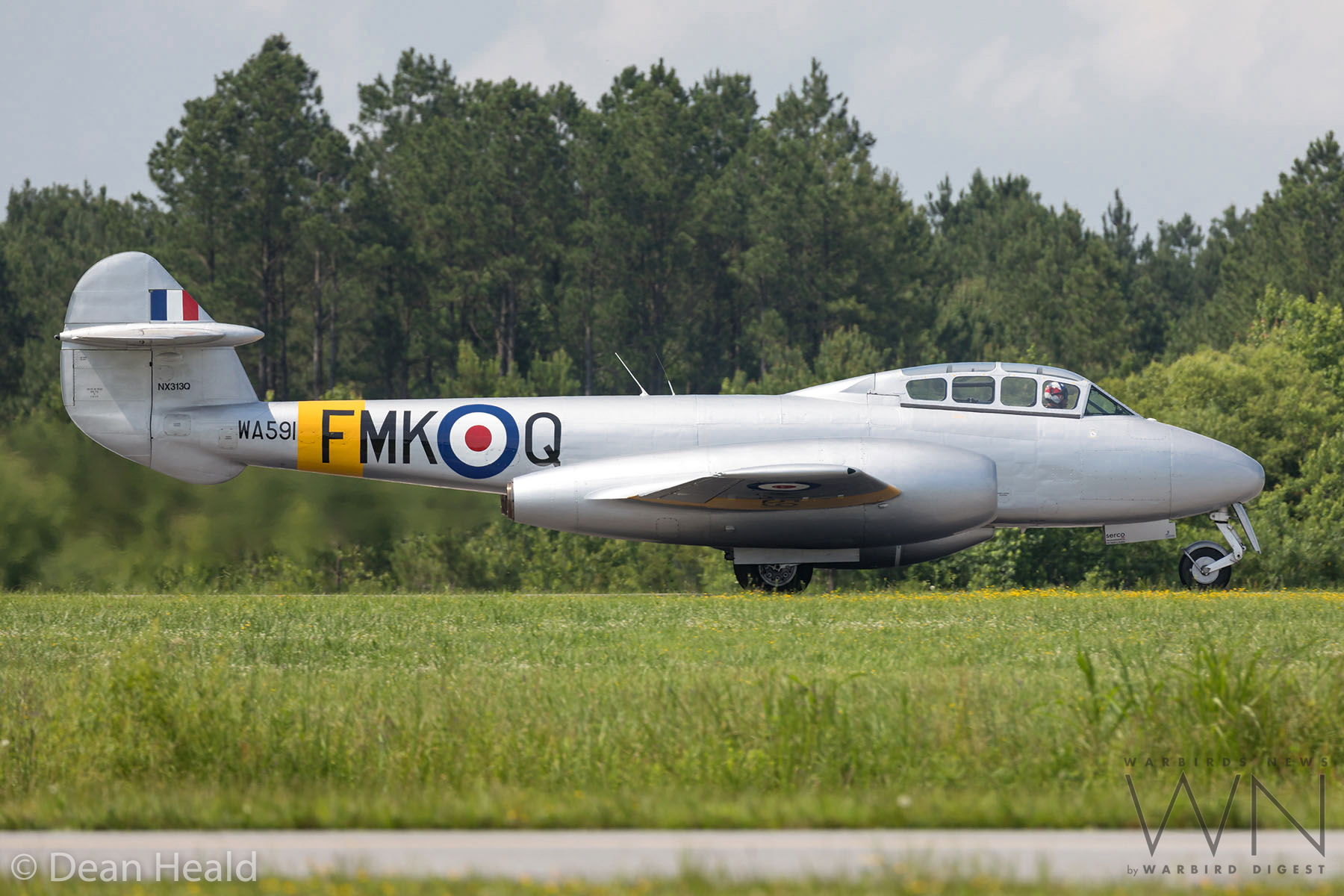 According to Dean, following its test flight the Meteor flew to Elizabeth City in North Carolina. She will apparently stay in Elizabeth City until Thursday, and then begin making her way across country to her new home in Michigan. WA591 is scheduled to attend EAA AirVenture Oshkosh 2018 this July, alongside two of her contemporary British stablemates from the World Heritage Air Museum, deHavilland Venom FB.54 (N747J, ex-Swiss AF J-1747) and Vampire T.55 (N115DH, ex-Swiss AF U-1206), where the trio will help celebrate the Royal Air Force Centenary. We look forwards to seeing the Meteor on the air show circuit for many years to come, and congratulate her owner, Marty Tibbitts and his World Heritage Air Museum for their foresight in bringing this rare treat to American skies. WarbirdsNews would particularly like to thank photographer Dean Heald for his marvelous contributions to this article.