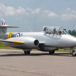 WA591 rolled off Gloster’s production line at Hucclecote in mid-1949. She served with the Royal Air Force at various domestic training establishments including Stradishall, Driffield, Finningley, and the College of Warfare at Manby, before retiring from flight to become a ground instruction airframe with No.5 Maintenance Unit at RAF Kemble in 1965. She closed her RAF service as a gate guard at RAF Woodvale, near Liverpool, but eventually ended up on the gate at the now-closed British Aerospace Factory at the former RAF Woodford airfield by the mid-90s. An enterprising fellow named Collin Christopher Rhodes acquired her in 1993 for restoration to airworthiness with The Meteor Flight. Following 16 years of hard work in cramped conditions at Yatesbury, and a lot of capital investment, WA591 took to the skies again at Kemble on June 14th, 2011, when she became the oldest active jet aircraft in the world. She subsequently joined the Classic Air Force and appeared on the air show circuit a number of times in the following years, until Classic Air Force’s primary owner, Mike Collett, decided to part with the bulk of his fleet of airworthy historic aircraft in 2015.
