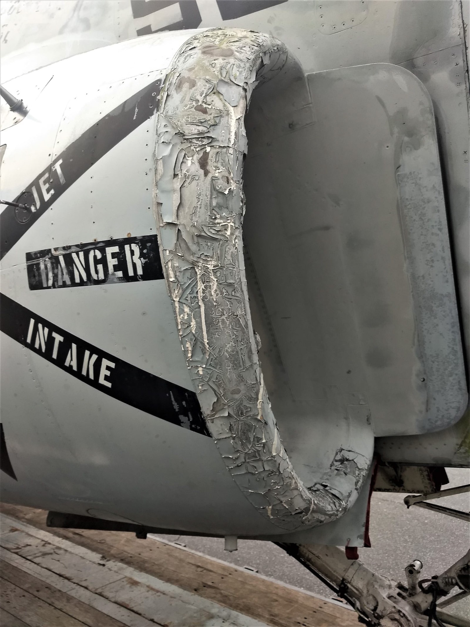 This aircraft had been a part of the now-moribund Quonset Air Museum since December 7th, 1994, having flown there into retirement from NAS Oceana while serving with VA-34 Blue Blasters. (Sadly the Quonset Air Museum had to close its doors permanently in 2016; its impressive collection of airframes has slowly moved on to other museums in the interim, although at least one, SP-2E Neptune BuNo.131427, ended up scrapped in May, 2018.)