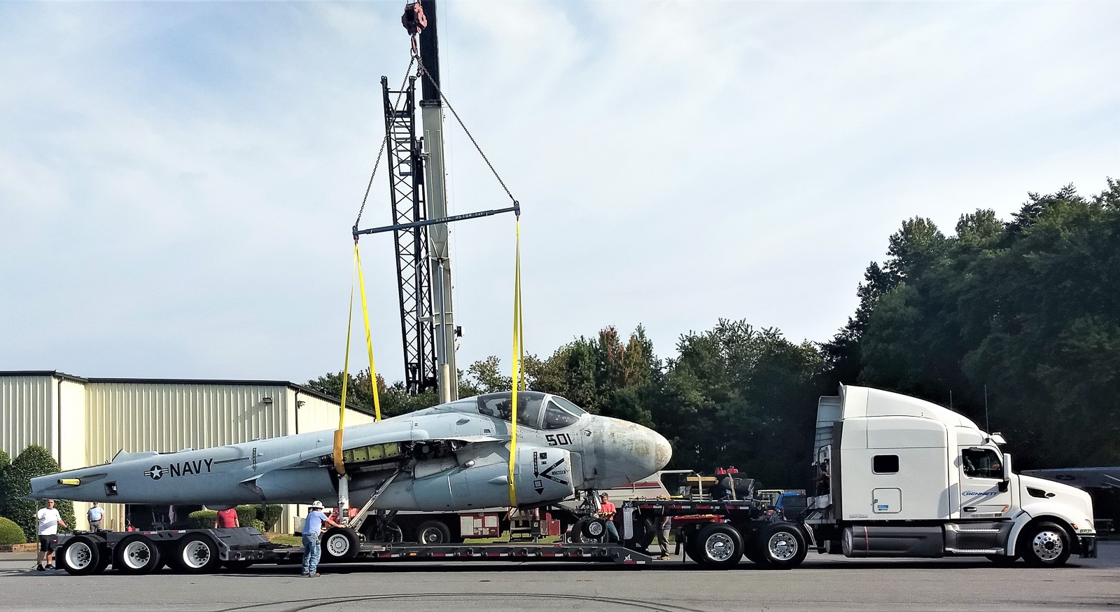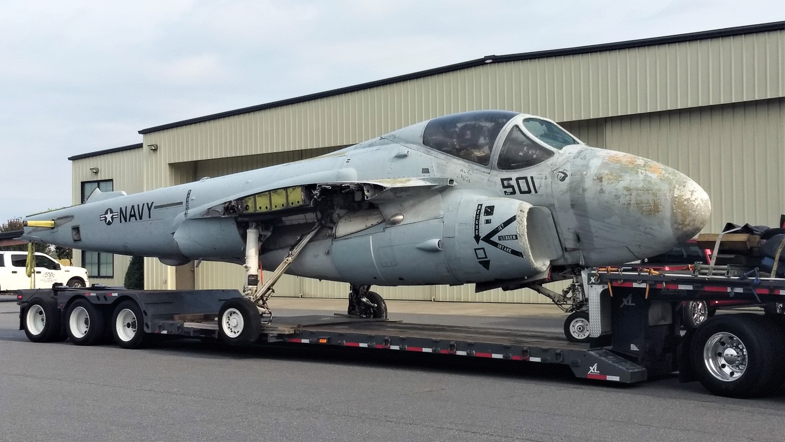 The Hickory Aviation Museum in Hickory, North Carolina took delivery of a Grumman A-6E Intruder (BuNo.155629) on October 1st. A team of their volunteers had ventured up to Rhode Island over the previous week to disassemble the aircraft for transport via low-loader to its new home.