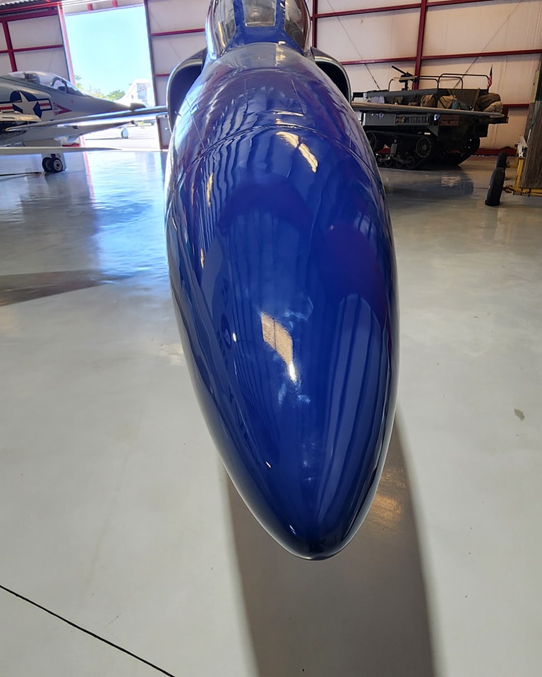 Located on the Atlantic coast of Florida in proximity to Cape Canaveral, the Valiant Air Command, Inc. Warbird Museum already has experience with the Grumman F11F Tiger and has previously restored a later example of the aircraft, F11F-1 Tiger BuNo 141882, for display at their museum. The restoration of BuNo 138608, the oldest existing F-11 Tiger, got underway around 2017, and by 2024, the aircraft was restored with the iconic paint scheme of the Blue Angels, and was placed on temporary display at the museum, the fuselage resting on a cradle, until March 2025, when it was shipped to Los Angeles.