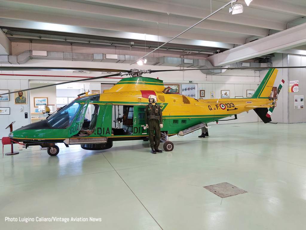 Agusta A 109AII, Volpe 133 with s/n MM81334. Built-in 1988 with construction number 7417, this helicopter arrived with the Guardia di Finanza in January 1989. Following its decommissioning in 2009, the helicopter had accumulated 3040.10 flight hours. It has not received any restorative treatment since those days, but is preserved in virtual flying condition.