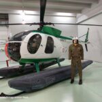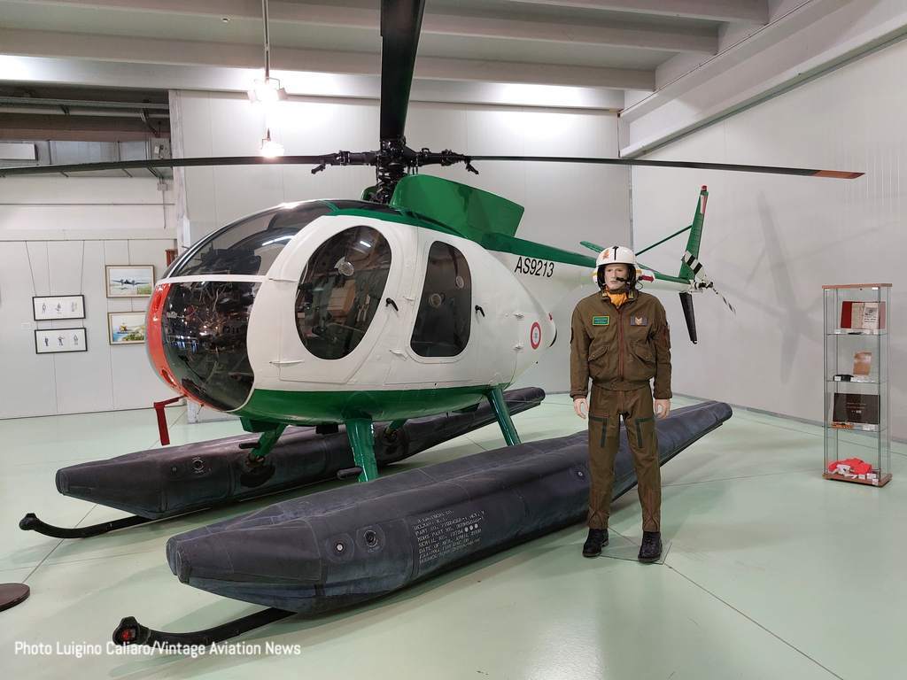 Nardi Hughes NH-500M, Volpe 51 MM80850, and construction number 1220-223M. Volpe 51 is one of the very first NH 500M to serve in the Guardia di Finanza; it was decommissioned in the late 1990s. From April 2002, it went on display at the Inspectors School of L’Aquila. Recovered from that organization in 2011, it underwent a painstaking, eight-month restoration which returned the airframe to its original, 1974 condition. This model has several peculiarities which include the provision of a winch, external auxiliary tanks, and the American, initial model main rotor.