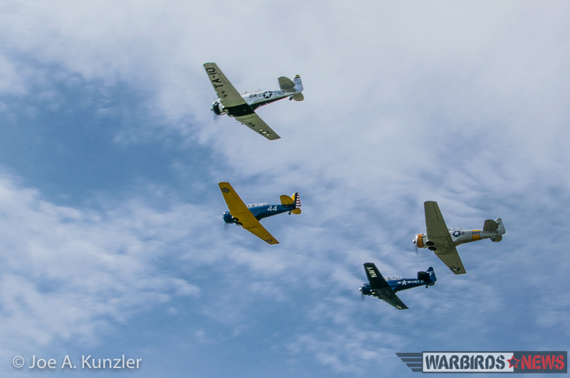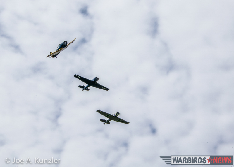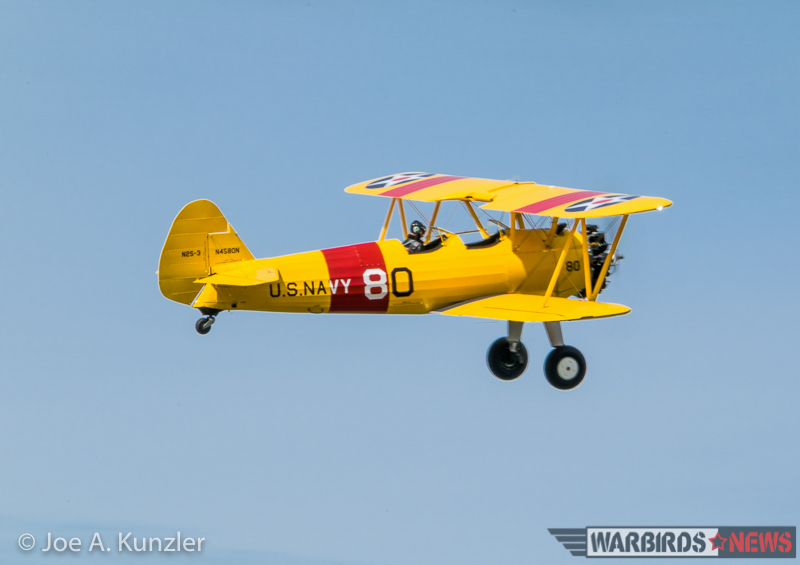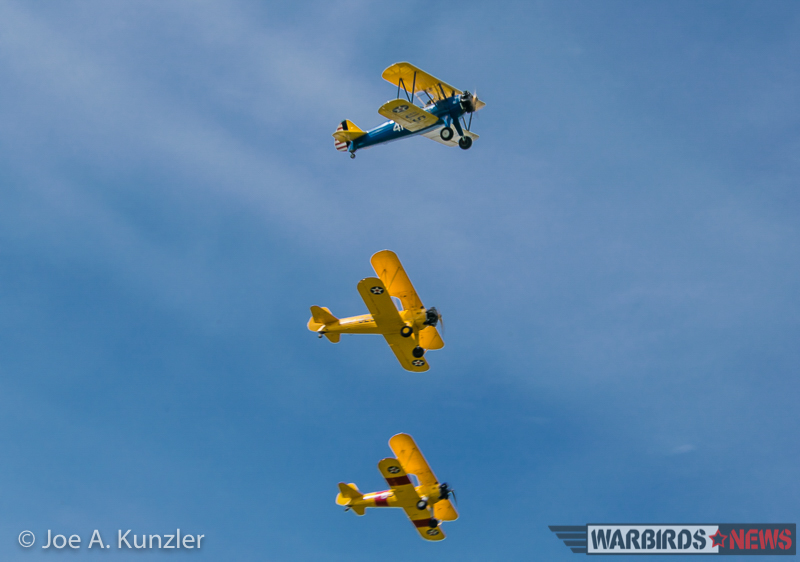 Of course, Texans and Harvards were not the only participants in Fly Day festivities. Three Stearman biplanes – one belonging to the Heritage Flight Museum, another owned by active-duty US Navy Lt. Commander Alex Bock, and finally one formerly owned by the late Marine Corps aviator John Hubner who flew 275 combat missions over Vietnam – took flight and provided formation demonstrations.