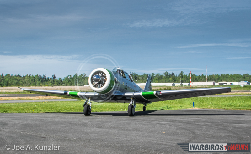 The Fly Day featured the participation of a number of different warbirds from around the region. Multiple North American T-6 Texan variants arrived from the northern Puget Sound area, including a 1952-built Canadian Car & Foundry Harvard 4 from the Canadian Museum of Flight in Langley, British Columbia.